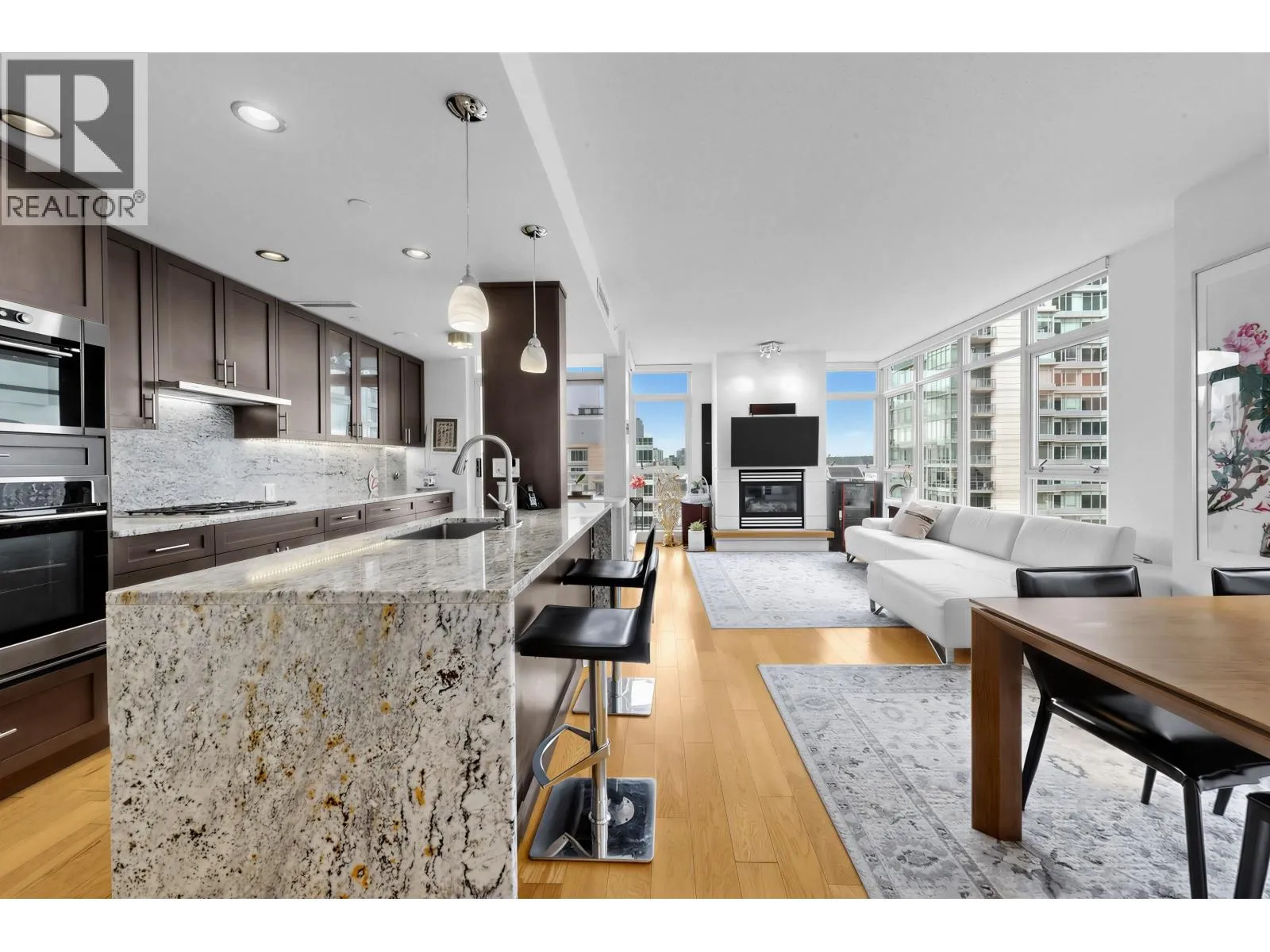 Welcome to WATERFORD! Luxury waterfront building corner unit located in the most desirable Yaletown. This Southwest unit home features expansive floor-to-ceiling windows flooding the home with natural light. The kitchen opens to the living space and features top-of-the-line fully integrated appliances. The entertainment-sized living room at the south end of the home is designed to capture the UNOBSTRUCTED WATER AND