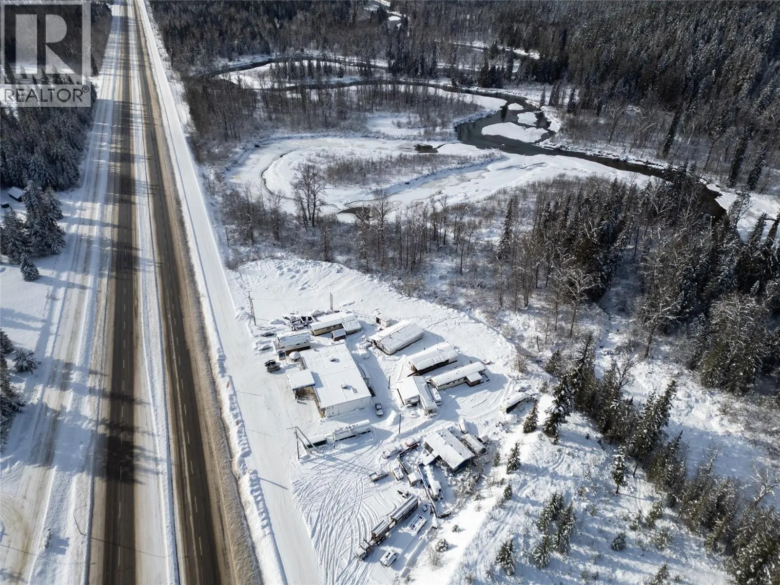 Incredible investment opportunity, sitting on 21.795 acres of riverfront land to the northeast of Sicamous, adjacent to Highway 1 (Trans Canada Highway). This offering includes a gas station with high visibility (leased to September 2031), fuel tank; an equipped restaurant (currently vacant), six modular homes (currently rented), a structure with a rental both up and down, RV stalls, significant frontage