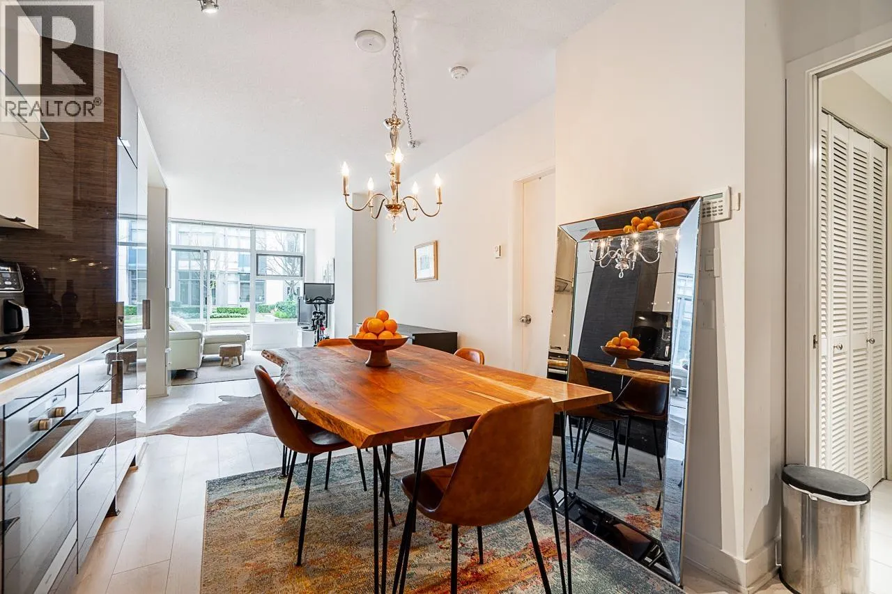 Welcome to KITS360! This bright open-concept studio offers 480 sqft of interior living and a spacious patio overlooking a tranquil water fountain and the courtyard’s gardens. Upgraded wood floors, custom wall bed and a den currently configured as a walk-in closet with California Closets for maximum efficiency. Sleek kitchen with stainless steel Miele appliances and gas cooktop, plus a spa-inspired