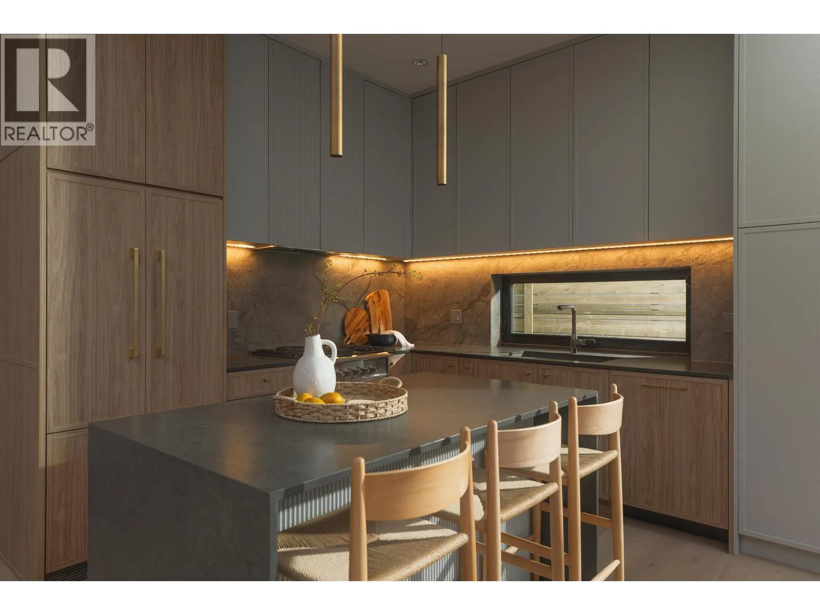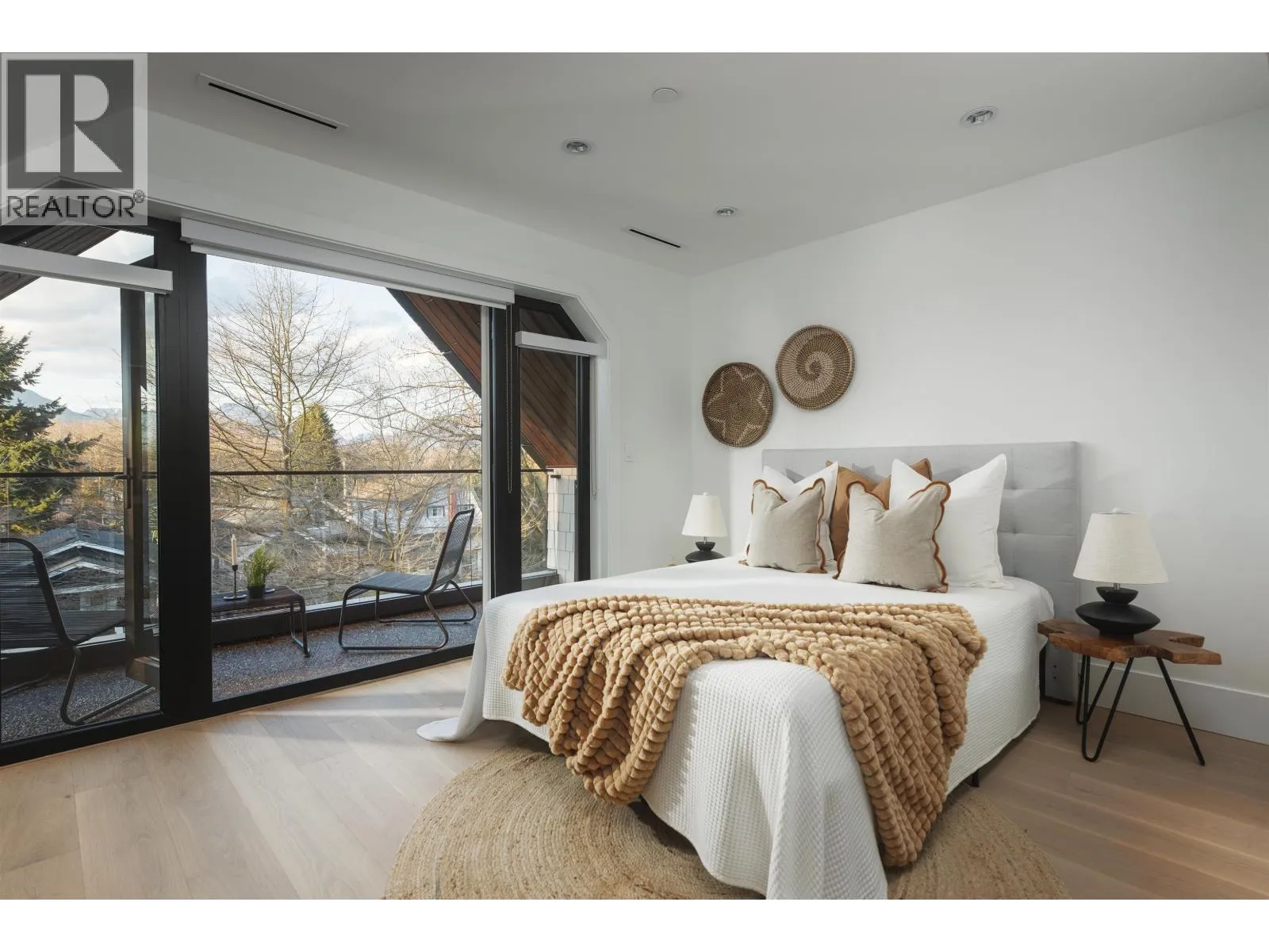 Some homes just check boxes. This one stays with you. Front unit on a quiet, tree-lined street in Hastings Sunrise. North-facing with views to Grouse and the Lions. 3 full size bedrooms each with its own ensuite – plus a powder room. A layout that feels considered, not forced. Professionally designed by Kenzi Design Studio with custom lighting,