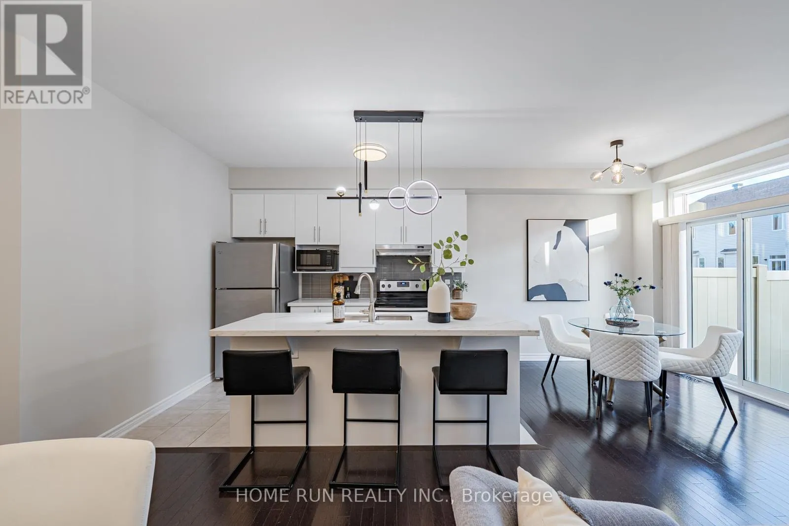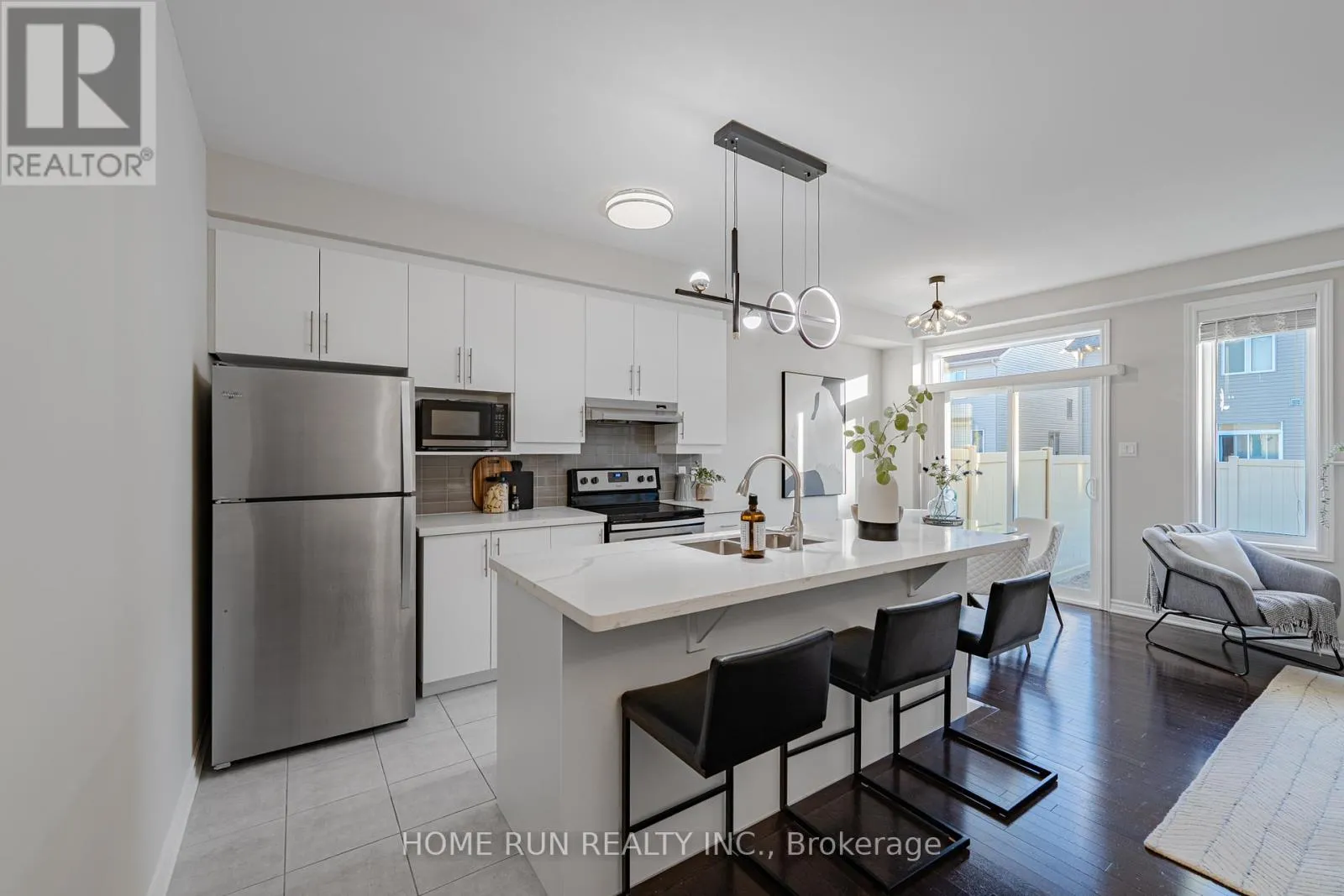 Modern 2-Storey Interior Unit Townhome Facing a Park in Longfields, Barrhaven! Built in 2017 by Mattino Homes, the Aquamarine model offers 1,862 sq. ft. of living space across three floors, including a finished basement. The home has 3 bedrooms, 2.5 bathrooms, and a south-facing backyard.The main floor features 9′ smooth ceilings, hardwood flooring, an open-concept living and dining area with