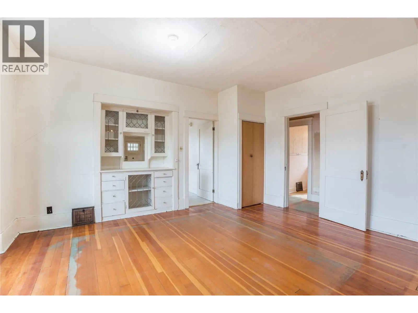Quick possession possible! Fall in love with this charming home filled with character from the original fir floors to the high ceilings just waiting for your renovating and refinishing ideas. Wood fireplace in the living room plus an impressive archway dividing the adjoining dining area with built-in hutch. 3 good sized bedrooms all on the main level.