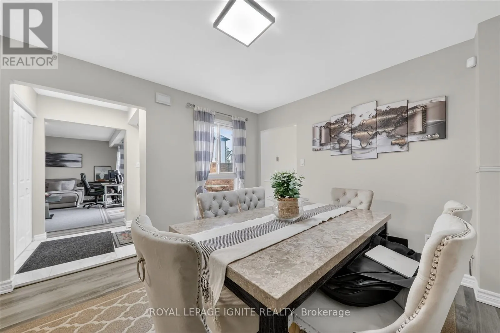 Beautiful end unit townhouse in a meticulously maintained community, featuring 3 spacious bedrooms and a finished basement. laminate flooring throughout all bedrooms and in the living area. The main floor offers a functional layout with separate living and dining rooms, along with a convenient 2 piece powder room. The kitchen is well designed with quartz countertops, centre island, stainless steel
