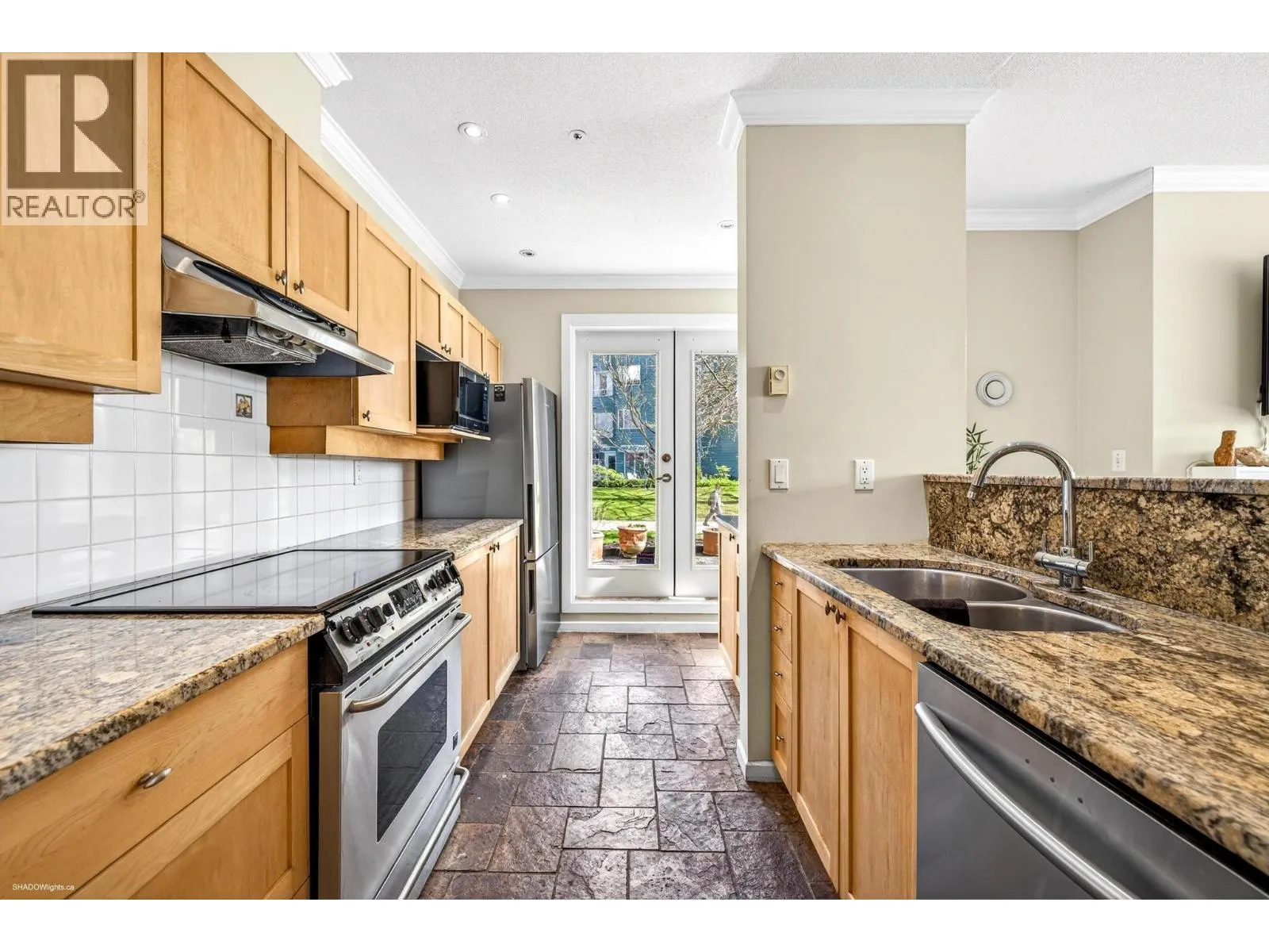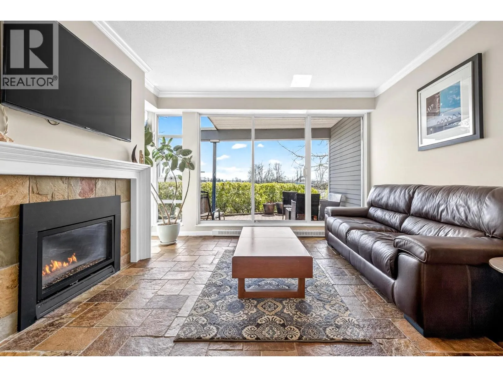 Spectacular, unobstructed river views define this beautifully renovated 1,085 sq. ft. 2-bedroom, 2-bathroom corner unit-arguably the best in the building. Step outside to your impressive 860 sq. ft. wraparound private patio, perfect for entertaining or relaxing in a true indoor-outdoor oasis. The open-concept interior features slate tile flooring, quality laminate in the bedrooms, and a stylish kitchen with S/S appliances,