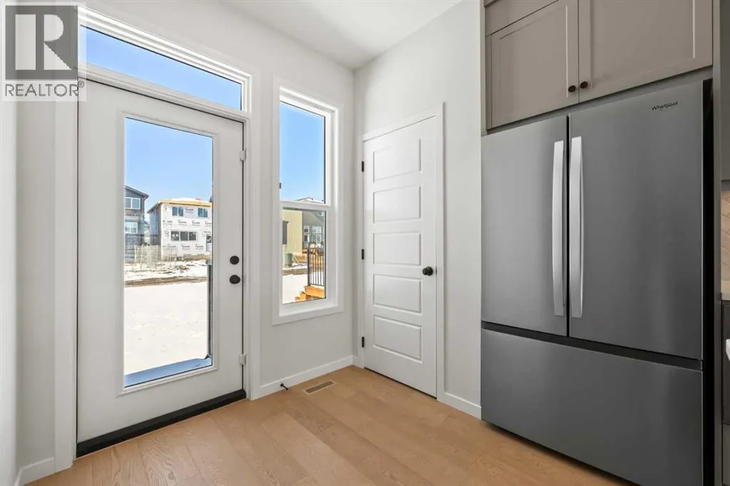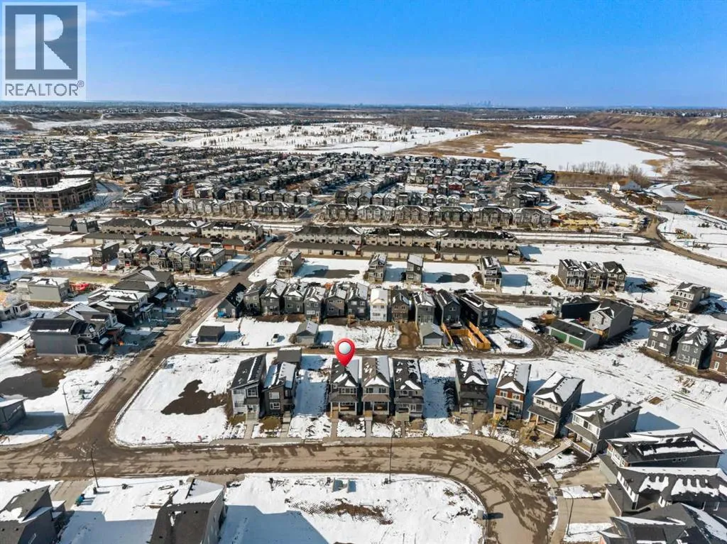 buyers seeking contemporary comfort in a well-connected southeast Calgary neighbourhood.The main level features a bright and welcoming open-concept design enhanced by high ceilings, large windows, and durable engineered hardwood flooring throughout the primary living areas. The kitchen is both stylish and practical, showcasing quartz countertops, a central island with breakfast bar seating, modern cabinetry, and a gas stove, making it ideal for everyday cooking and entertaining. The adjoining dining and living areas create a seamless flow, providing comfortable space for gatherings or relaxing evenings at home. A BBQ gas line adds convenience for future outdoor enjoyment.Upstairs, the home offers well-appointed living spaces designed for comfort and flexibility. The primary bedroom retreat includes a walk-in closet with built-in organizers and a private ensuite featuring a double vanity and soaking tub, creating a peaceful space to unwind. Additional bedrooms are generously sized and thoughtfully positioned, while upper-level laundry adds everyday convenience.The unfinished basement with separate entrance provides excellent potential for future development, allowing homeowners to customize additional living space to suit their needs. Whether envisioned as a recreation room, home office, or extended living area, the lower level offers valuable flexibility for future growth.Additional highlights include modern flooring throughout, quartz counters in the kitchen and bathrooms, a welcoming front porch, and off-street parking. The home has been designed as a no animal and no smoking property, offering a clean and well-maintained environment.Wolf Willow is known for its access to parks, playgrounds, walking and biking pathways, nearby schools, and convenient shopping, all while being close to the Bow River valley and scenic natural surroundings. The community offers a balance of outdoor recreation and urban accessibility, making it an increasingly popular choice for homeowners.With its modern design, quality craftsmanship, and opportunity for future customization, 114 Wolf Hollow Terrace SE presents an excellent opportunity to own a new home in one of Calgary’s most desirable emerging communities. (id:62650)