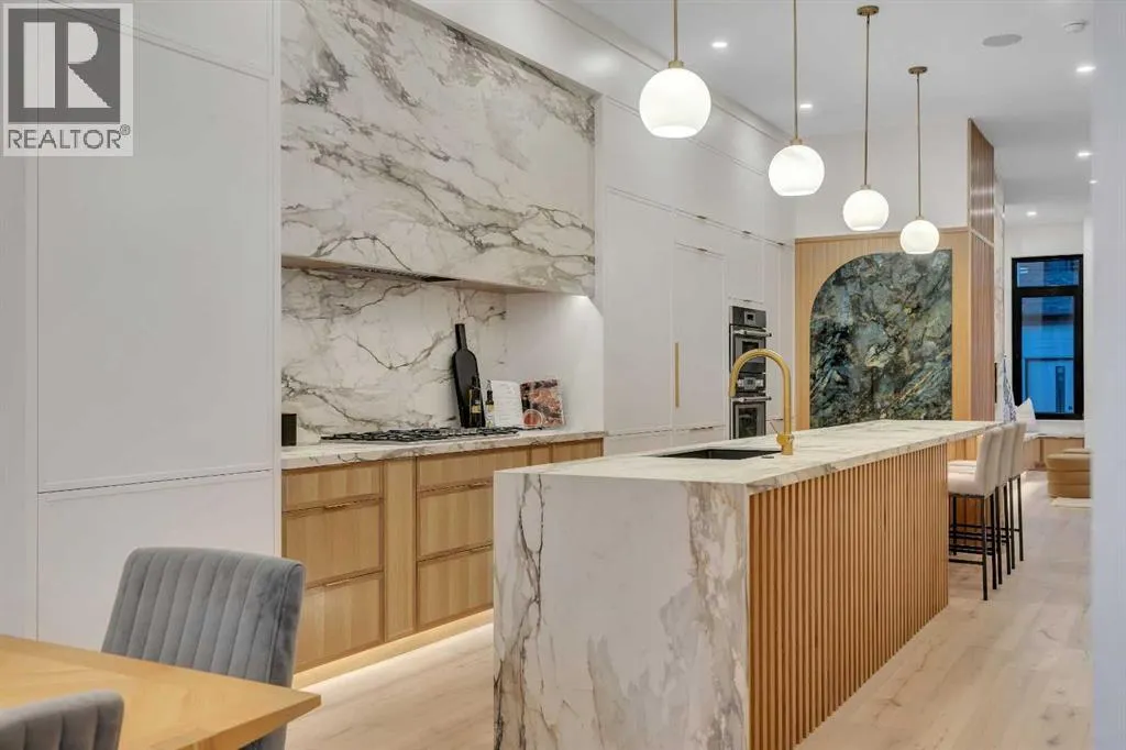 Architectural distinction meets contemporary luxury in this newly built custom home designed by JTA Design and expertly built by Brick Developments. Located in the heart of Inglewood, one of Calgary’s most iconic inner-city communities, the residence features steep-pitched rooflines, timeless brick detailing, and expansive windows that blend modern design with enduring architectural character.Steps from the Bow River pathways and surrounded
