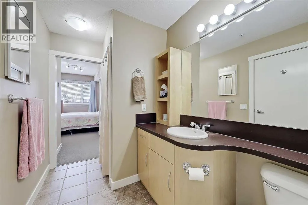 – they just don’t make them this size anymore!Proudly owned and occupied by a single owner for the past 16 years, this move-in-ready home has been meticulously cared for throughout. It features updated hard-surface flooring and well-maintained finishes, creating a clean and modern feel.The functional layout is a true highlight, comfortably accommodating full-sized furniture, including a proper dining table and a generously sized living room set, something rarely found in one-bedroom condos. Storage is another standout feature, with multiple closets throughout, including a well-proportioned primary closet that supports easy, everyday organization, plus a separate storage locker for additional items. The kitchen is impressively equipped, offering the same ample counter space and cabinetry found in many two-bedroom units within the building, ideal for cooking and daily use. The bedroom is generously sized and easily fits larger furniture, while providing direct access to the large bathroom, which also offers a second entrance from the living space. This smart layout allows for convenient dual access, maintaining convenience for the bedroom while remaining practical for guests.Additional features of this home include a private South-facing balcony, one heated underground parking stall, plus access to the building’s underground car wash. Residents also benefit from low condo fees, adding to the overall value.What truly sets this home apart is its exceptional walkability, placing it among the most convenient condo locations in the area. This unit is just a short walk from the 69 Street LRT Station, offering direct and efficient access to downtown Calgary, while quick connections to major routes such as Stoney Trail make commuting by car equally convenient. Outdoor enthusiasts benefit from the quick access to the mountains and the SW Ring Road. The Westside Recreation Centre is right across the street, providing year-round fitness and recreational amenities. Nearby schools include Ambrose University, Ernest Manning High School (Located in the Walk-Zone), and Rundle College. With shopping, dining, and everyday services all within easy reach, this location supports a truly walkable and easy lifestyle! (id:64429)