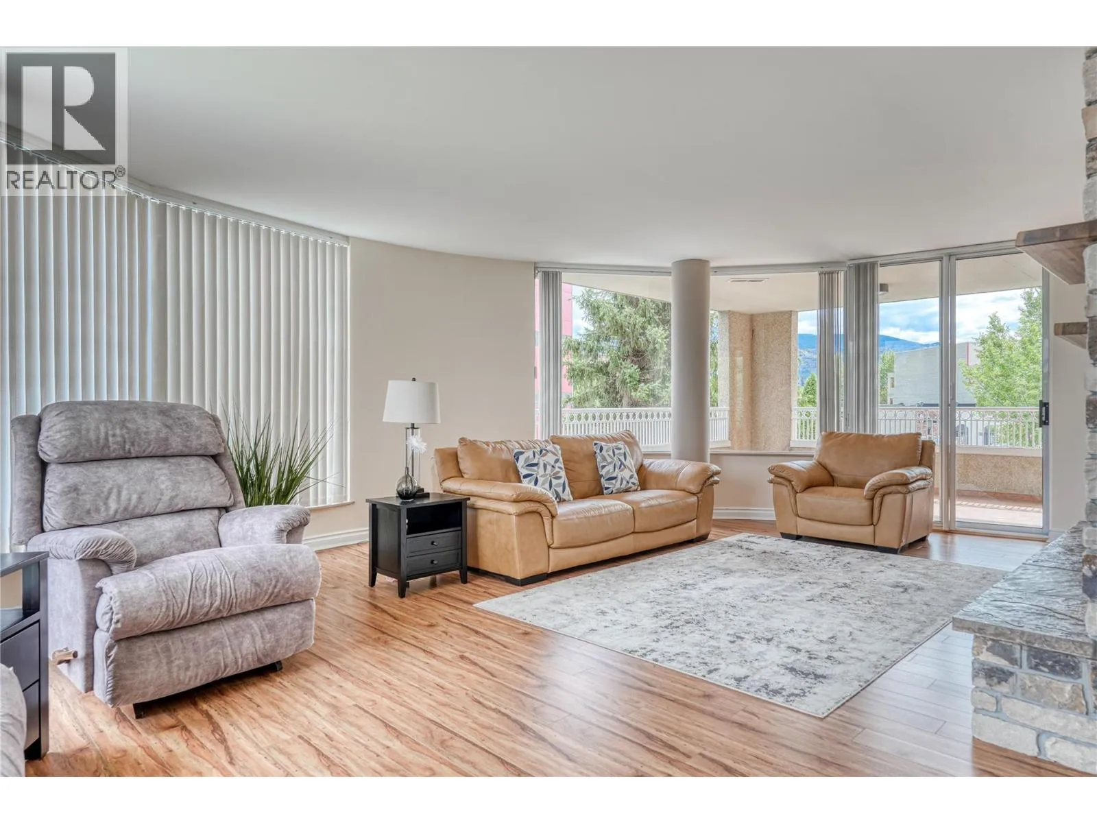 This extensively renovated 1,744-square-foot condominium offers an exceptional opportunity to enjoy luxury living in one of Penticton’s most sought-after buildings. The spacious interior is complemented by a beautifully updated kitchen, featuring high-end Miele appliances, including a gas range, beverage fridge, and quartz countertops. Renovations extend to the bathrooms, and the family room showcases built-in millwork along with two fireplaces, providing