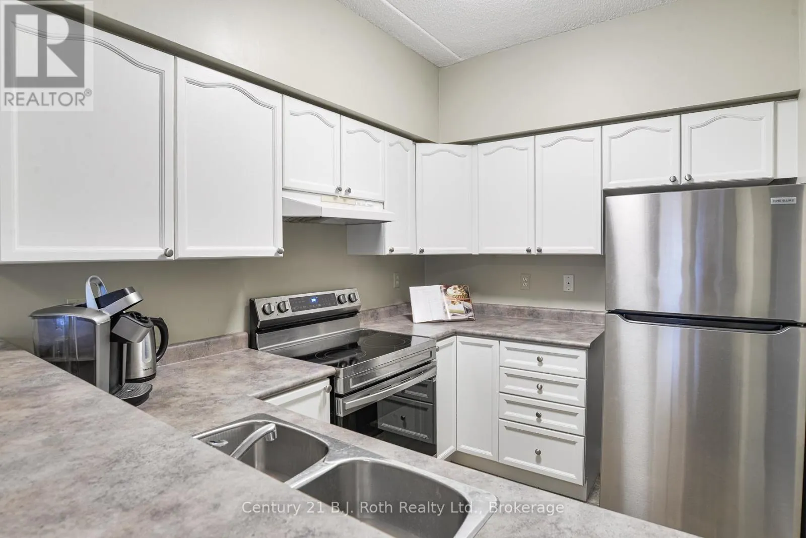 This extensively updated condo will impress you the moment you arrive! This ground level unit – with no elevators needed – offers spacious rooms with all new laminate flooring throughout, freshly painted walls, and newly painted kitchen cupboards. The bright kitchen features brand new appliances (dishwasher, fridge & stove), updated lighting fixtures, and plenty of cabinet space, with a dining