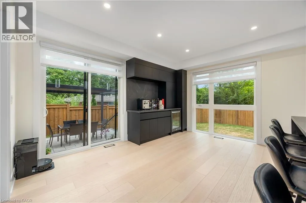 in Basement; 7.5 inches Baseboards, Designers Accent Wall in Living Rm, Wide Planks Engineered Hardwood, are throughout the whole house. Mesmerizing Foyer Open To above, with Metal Mono-beam Stairs with Natural White Oak Stairs and Glass Railing, custom walk-in Closets, Custom Kitchen with Natural Stone Counters,10ft X 4Ft Island, Functional Coffer Bar in Breakfast area. Inviting Living Rm. With B/I Gas Fireplace, Custom Selves, LED Designers Lights. All Bedrms with Ensuite Baths & Double Closets, All with Organizers and Spa-Like Ensuite Bathrooms. 2 Laundry Rms – One on 2nd fl. & One in the Basement. Perfect for Entertainment Basement with Oversized Great/Entertainment Rm, 5th Bedroom and Gorgeous Bathroom. Oversized Garage with Epoxy floor & EV Charger, inside Entry and pass through Door to Backyard. Interlock 3 cars Driveway & Patio with Pergola, Natural Stone Covered Porch and backyard steps. Enjoy an area that offers towering trees, Plant filled quite streets, meticulously landscaped gardens, gracious homes, the lakefront and nearby downtown plazas combine to make Roseland an almost magical place to live. Sweetgrass Park, Roseland Park, Tuck Park – are very uncrowded, serene and restful. Burlington’s Lakeshore area and Plazas, Schools, Parks and beautiful Trails. Property Taxes are not assessed Yet! Some photos are virtualy staged! (id:62650)