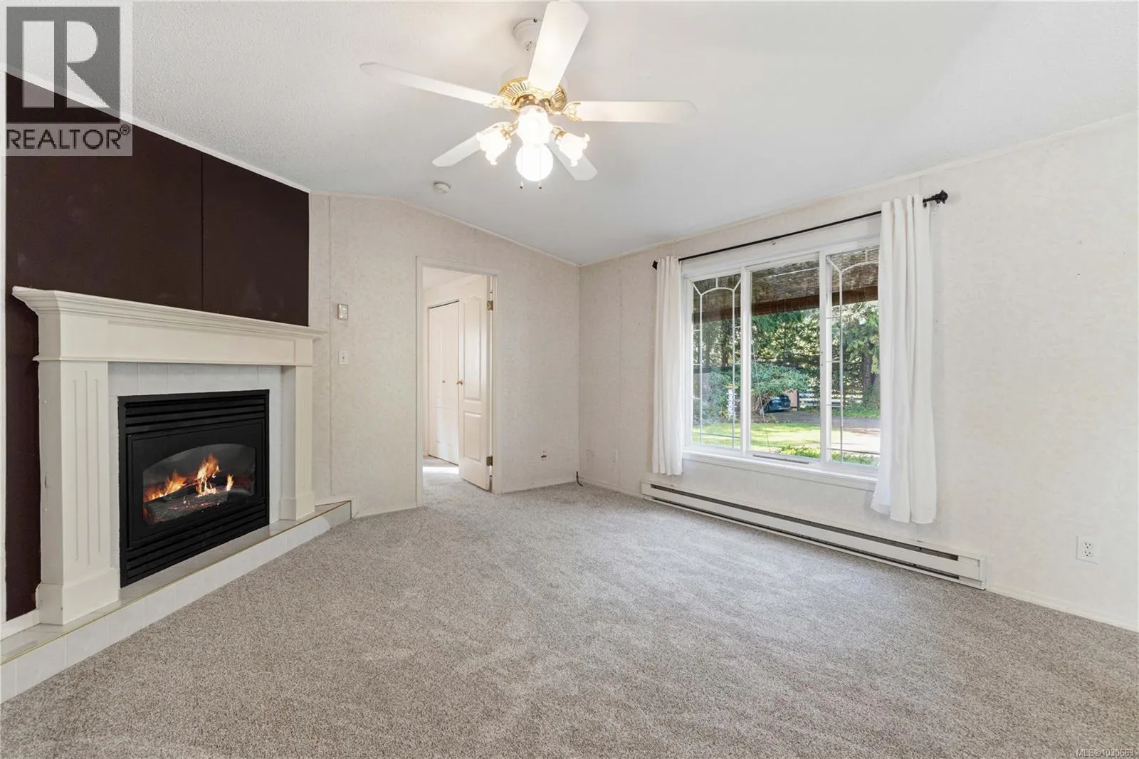Peaceful rural living just minutes from Qualicum Beach in the desirable Whiskey Creek area. Set on a private and mature half-acre lot, this 2-bedroom, 1-bath home offers a bright, functional layout with vaulted ceilings and white kitchen cabinetry. The spacious primary bedroom and brand-new carpets throughout make it move-in ready. A propane fireplace adds comfort, and a new hot water