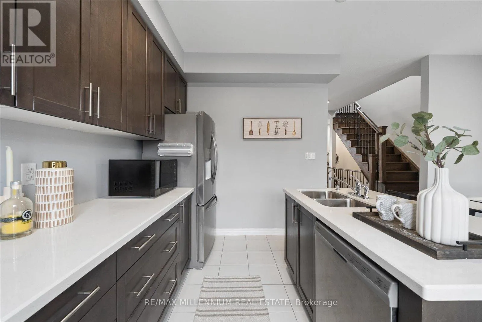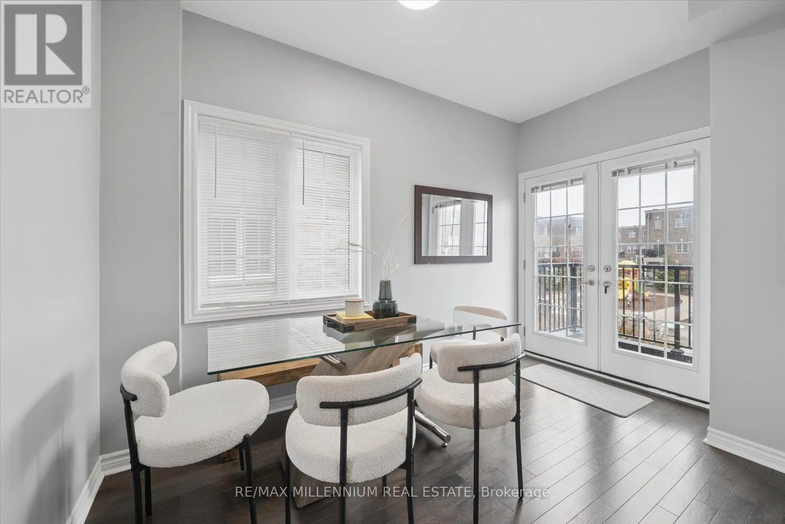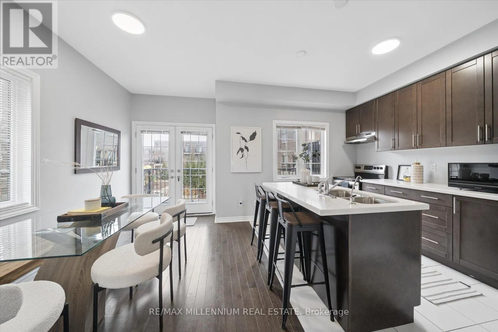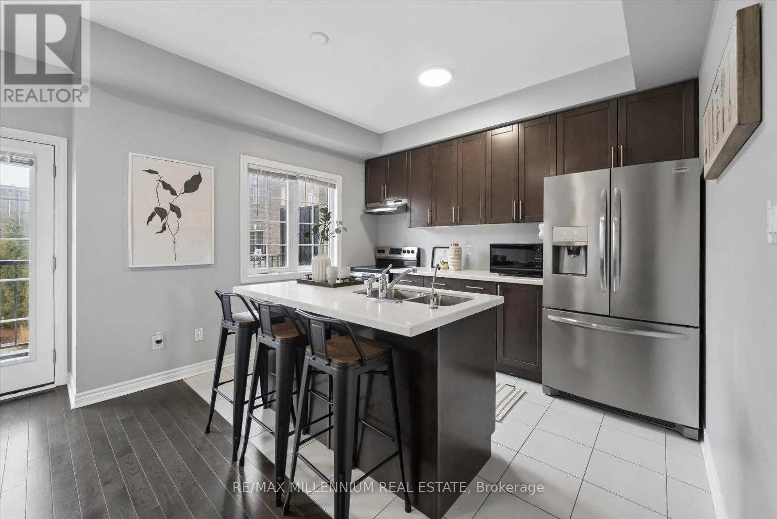 Step into your next home, a desirable end unit where the ground level features a versatile den-perfect as a home office, gym, or rec room-complete with a 2-piece bath and a walkout to green backyard oasis. A hardwood staircase leads you to the bright and spacious main living area, filled with natural light, a convenient laundry area, and a 2-piece