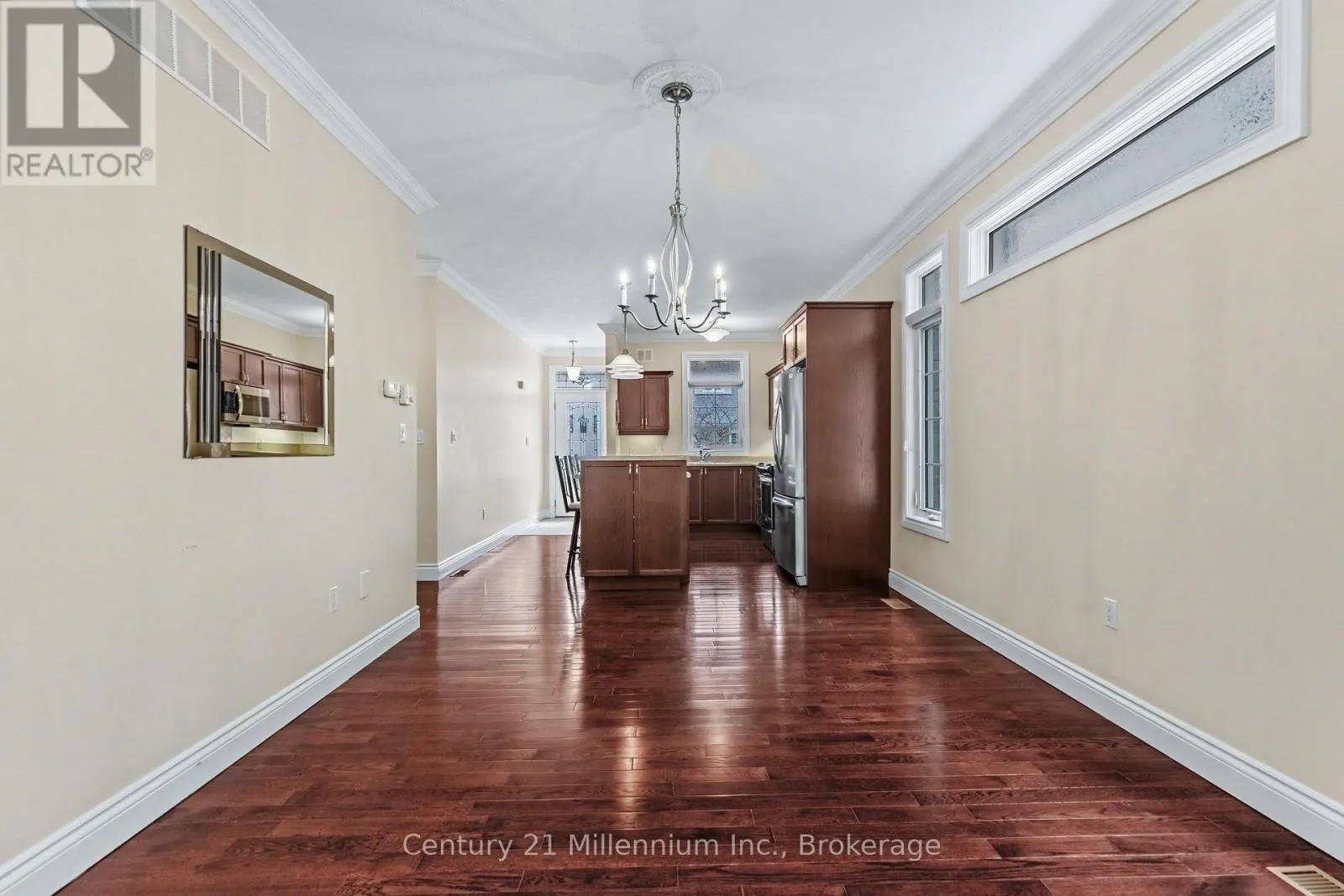 Welcome to Stonegate-where easy living meets the charm of a relaxed lakeside community. This beautifully maintained bungalow townhome offers a rare end-unit backing to the rear cedar hedge that enhances both privacy and tranquility. Step inside to an inviting open-concept layout designed for effortless everyday living. The front kitchen is both stylish and functional, featuring rich wood cabinetry, a central