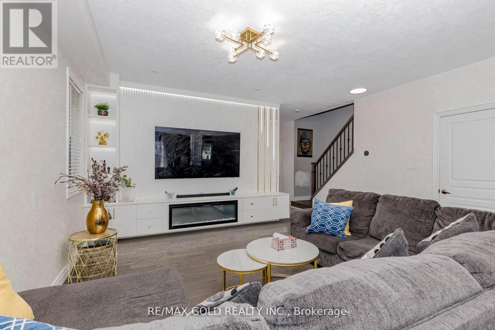 Welcome to 240 Birkinshaw – a beautifully renovated, fully furnished home that’s truly move-in ready. Enjoy a bright, spacious living room with hardwood floors throughout,9-foot ceilings on the main floor, and an open-concept layout perfect for everyday living and entertaining. Located in a quiet, living room featuring pot lights, two large windows, and a cozy gas fireplace – perfect for