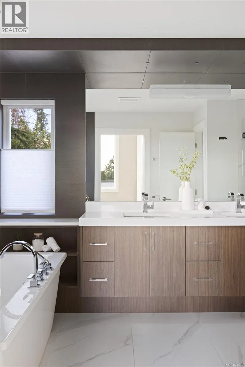 Experience elevated luxury in this exceptionally crafted, custom-built modern residence situated in coveted Oak Bay, masterfully designed by Jenny Martin. Offering over 4,300 sq/ft in the main home, the interiors showcase soaring vaulted ceilings, radiant in-floor heating and exquisite high-end finishes throughout. A wall of triple European sliding doors creates a seamless transition to the rear patio, complete with a