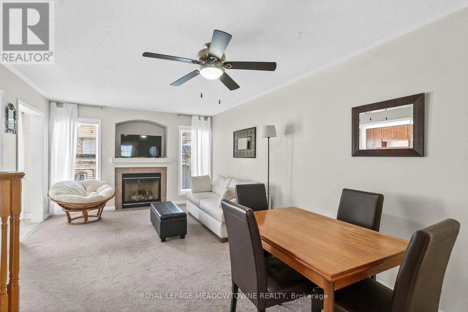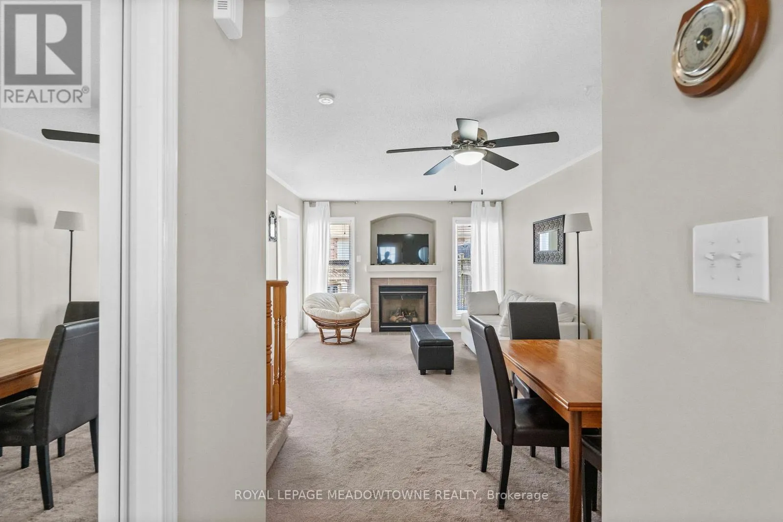 Mattamy Brannan model offering nearly 1,400 sq ft of finished living space including a finished basement. Freehold home with no condo fees. Open concept main level with gas fireplace and kitchen backsplash. Three bedrooms and full bathroom on the upper level. Finished basement provides additional living space for family room, office, or gym. Private fenced backyard with wood deck and