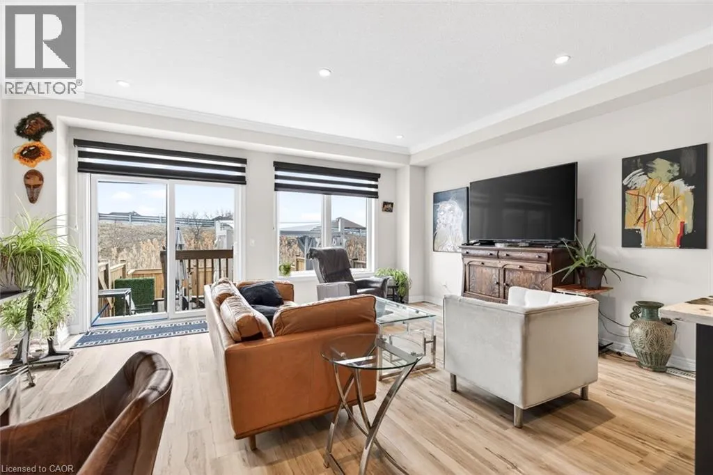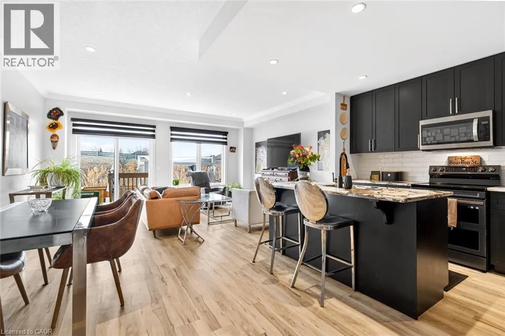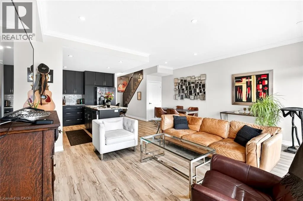 Beautiful 3 bedroom, 2.5 bathroom townhome with over 2,200 sq ft of finished living space. Bright open concept main floor with modern flooring, pot lights, and spacious living and dining areas. Stylish kitchen with dark cabinetry, stone countertops, stainless steel appliances, subway tile backsplash, and large island with breakfast bar. Upper level offers a generous primary bedroom, two additional bedrooms,