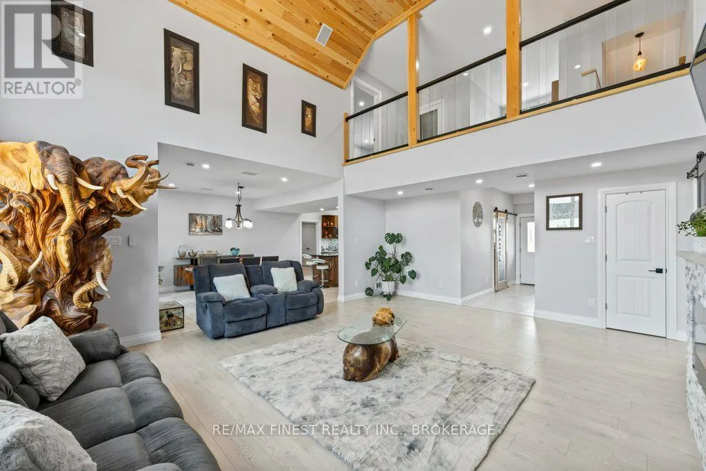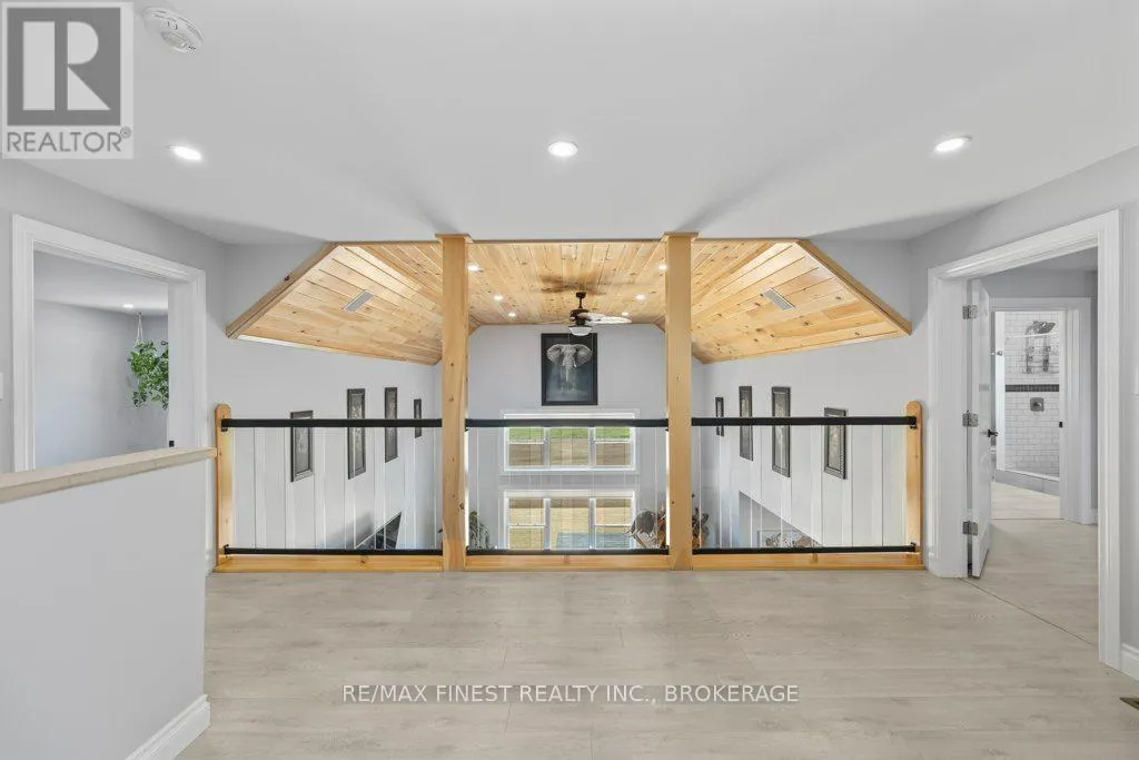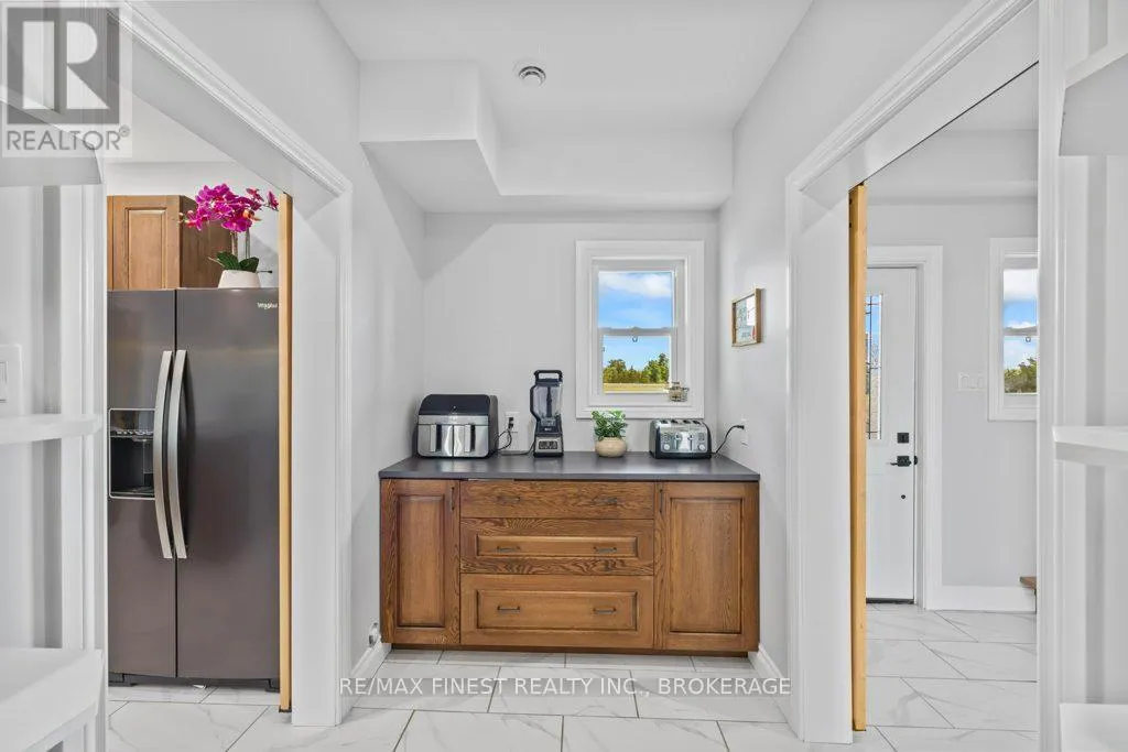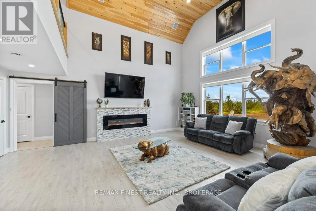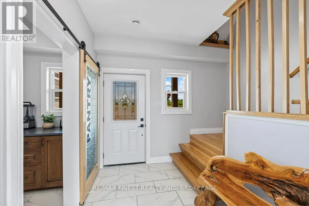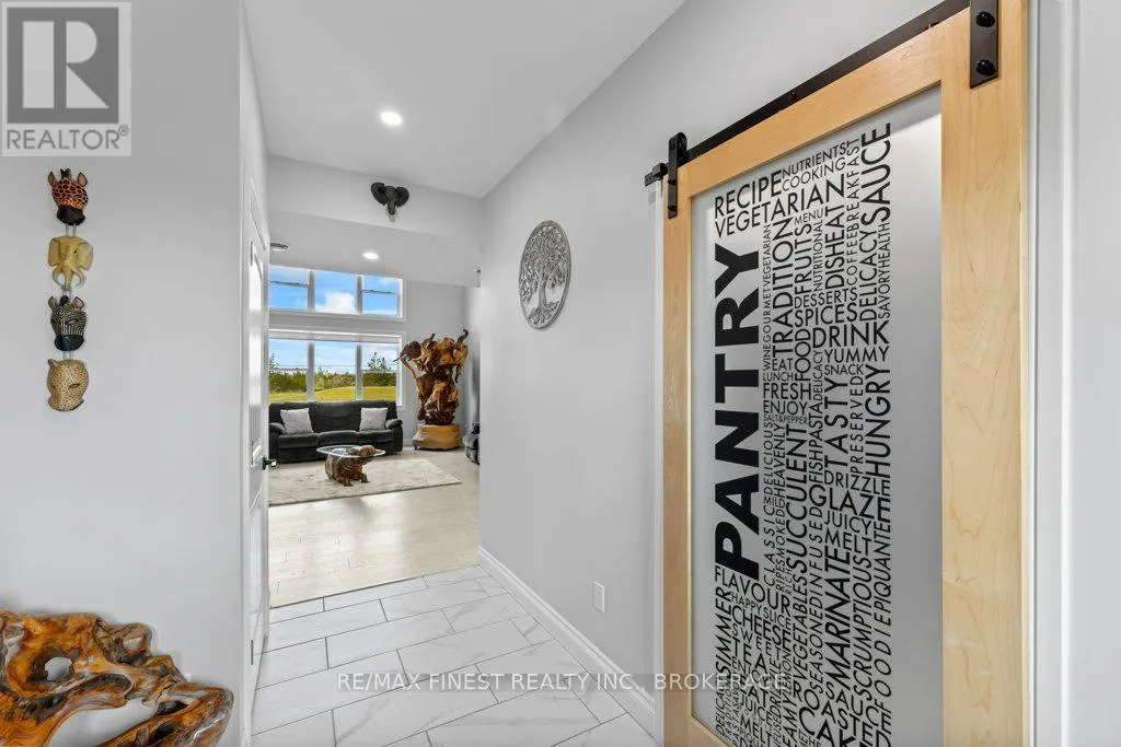 Set on a private 42+ acre parcel, this stunning custom-built home offers a truly unique layout and exceptional space for both indoor comfort and outdoor living. The gourmet kitchen is a standout, featuring in-floor heating, quartz countertops, custom oak cabinetry, black stainless steel appliances including a gas stove, and a convenient dual-access pantry from both the kitchen and front entry.