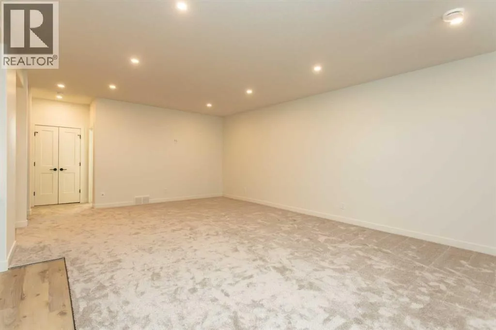A brand new Larkaun Homes bungalow in Evergreen with a triple attached garage! The front entryway greets you to the open style floorplan with vaulted ceilings. Two toned, soft close maple kitchen cabinets are complimented by crown mouldings, full tile decorative backsplash, stainless steel appliances including a gas stove with a custom maple hoodfan, quartz countertops, an eating bar island