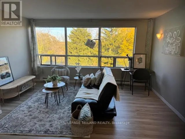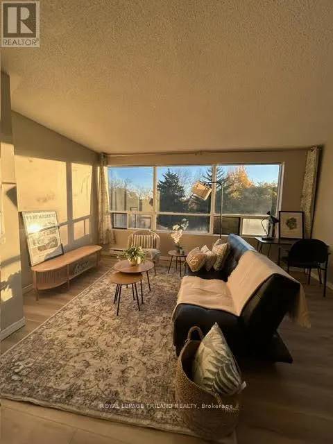 Top floor with gorgeous view facing east that overlooks the tree tops and parking area. Very desirable unit that’s warmer in the winter and cooler in the summer. Freshly painted with modern laminate flooring. Large storage room for off-season sports equipment and extra closet space with laundry in unit. Granite kitchen counter top and 5appliances. Prime location between Western University
