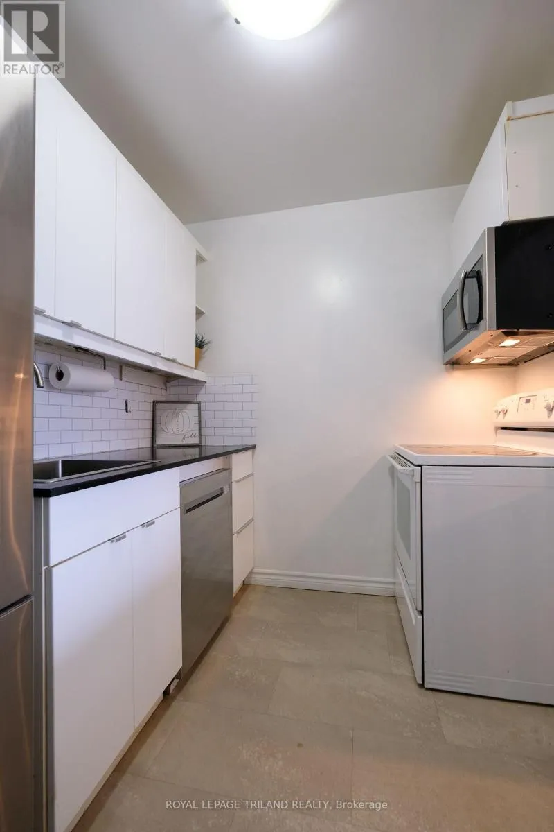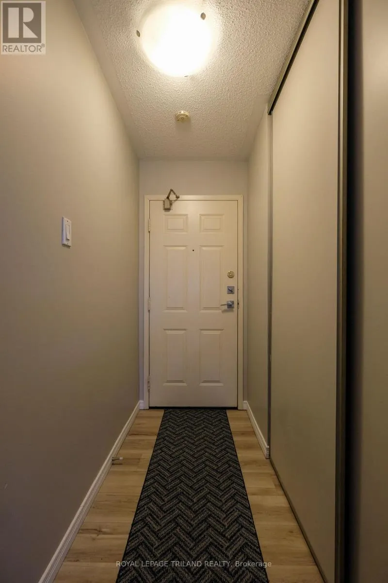 Top floor with gorgeous view facing east that overlooks the tree tops and parking area. Very desirable unit that’s warmer in the winter and cooler in the summer. Freshly painted with modern laminate flooring. Large storage room for off-season sports equipment and extra closet space with laundry in unit. Granite kitchen counter top and 5appliances. Prime location between Western University