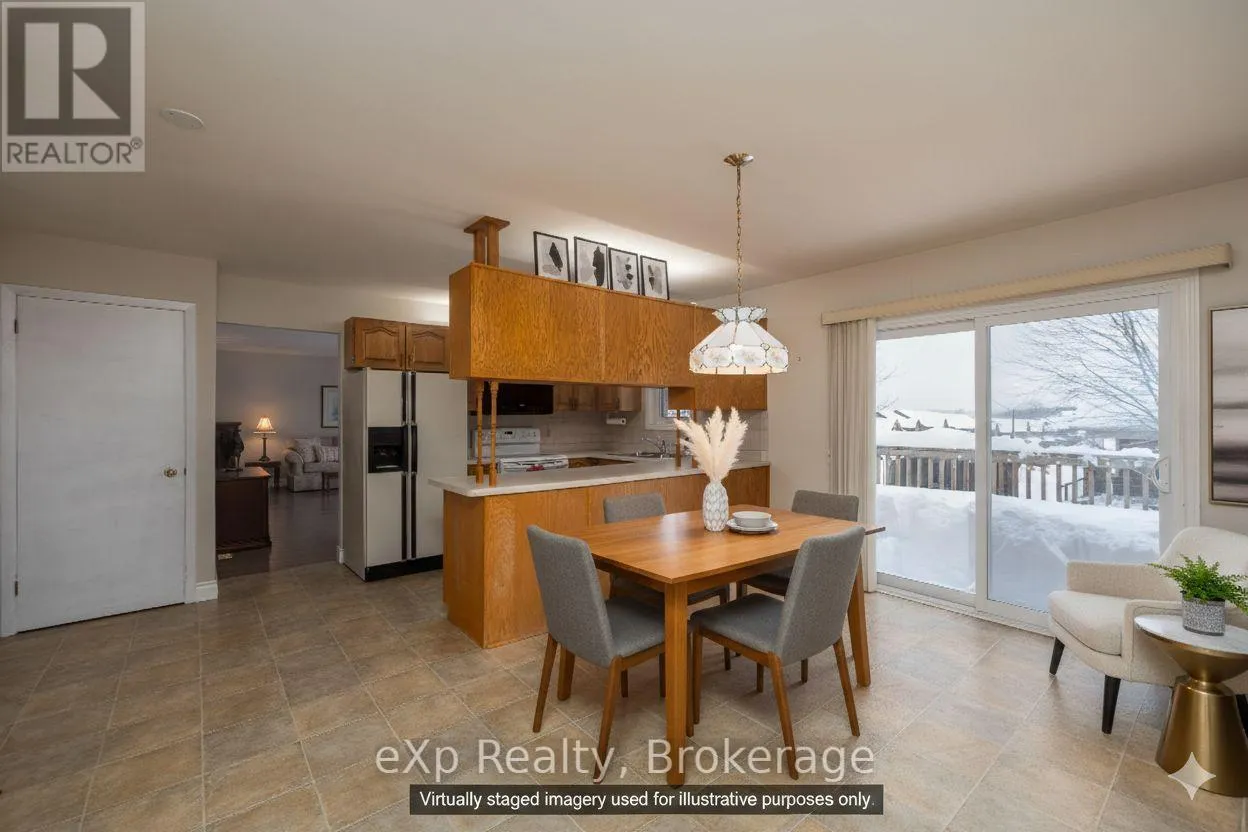 This well-maintained 3-bedroom, 2-bath brick bungalow in the heart of Markdale offers easy, comfortable living with an ideal in-town location. Enjoy an oversized living/dining room and a bright eat-in kitchen, both with walkouts to a large deck that spans the length of the home – perfect for relaxing or entertaining.The layout is thoughtfully designed with main-floor laundry located just inside