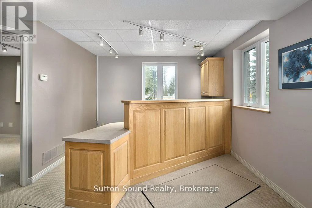 Versatile, Great exposure. Endless possibilities. All in the vibrant Beach front community of downtown of Sauble Beach. An ideal set up to run a business on the ground floor and live upstairs or rent out the upper level. Walk into the large lobby on the main floor with a 10’8” custom desk, featuring two 10 ft x 11 ft rooms