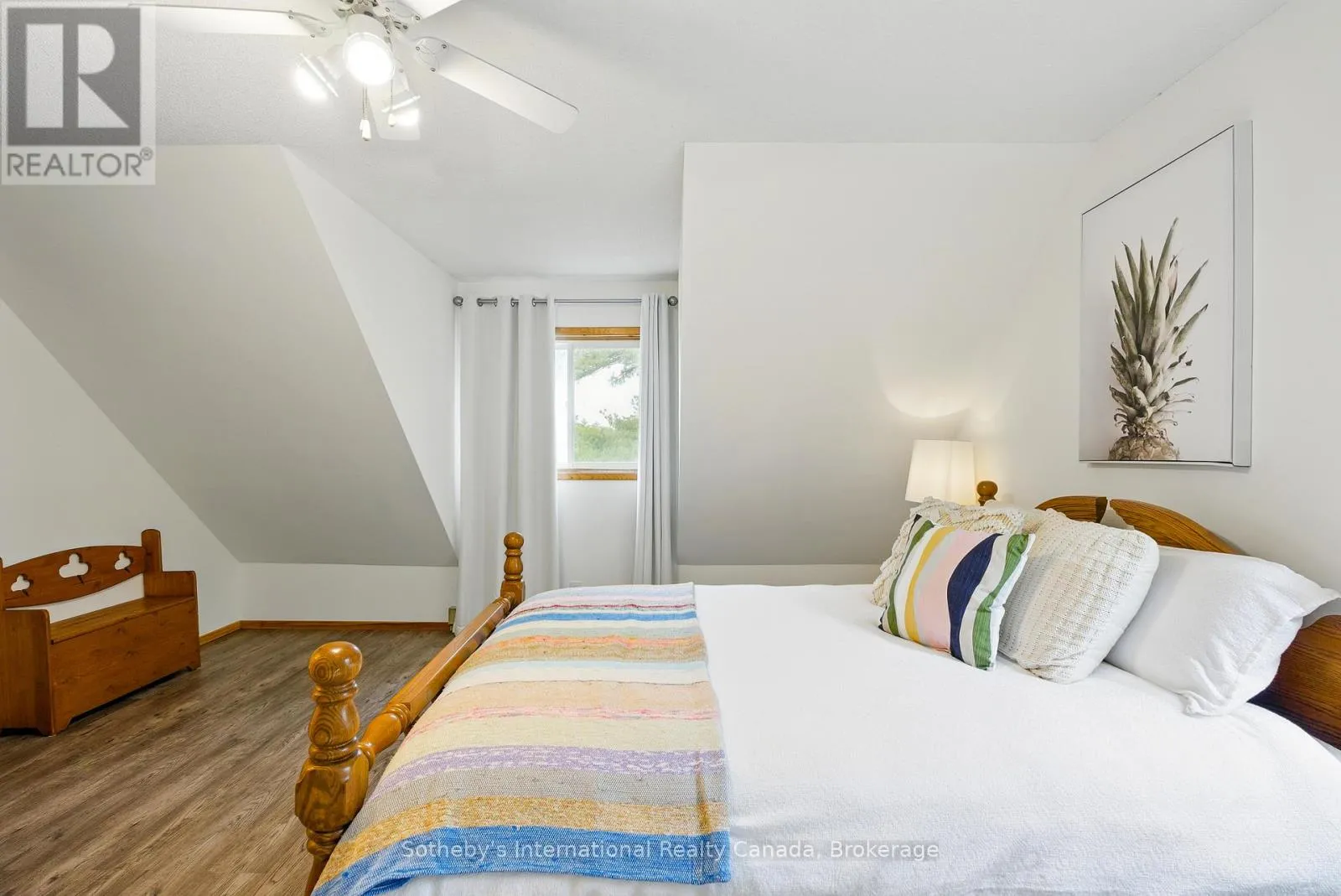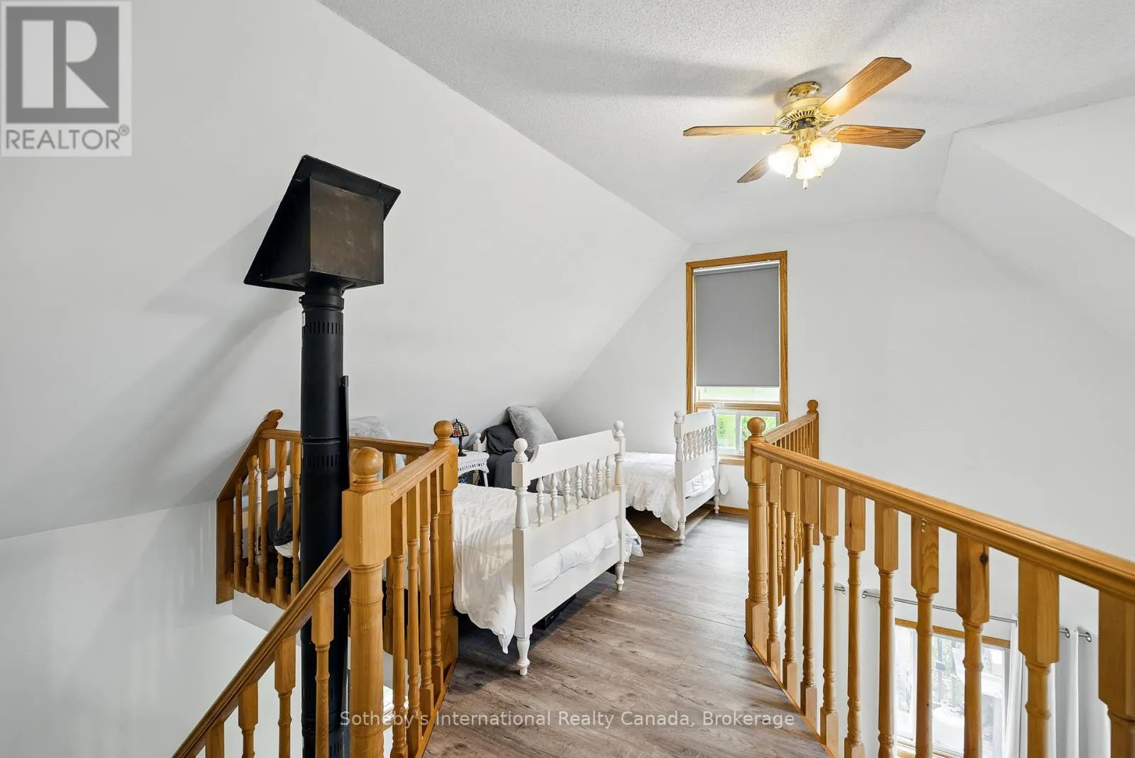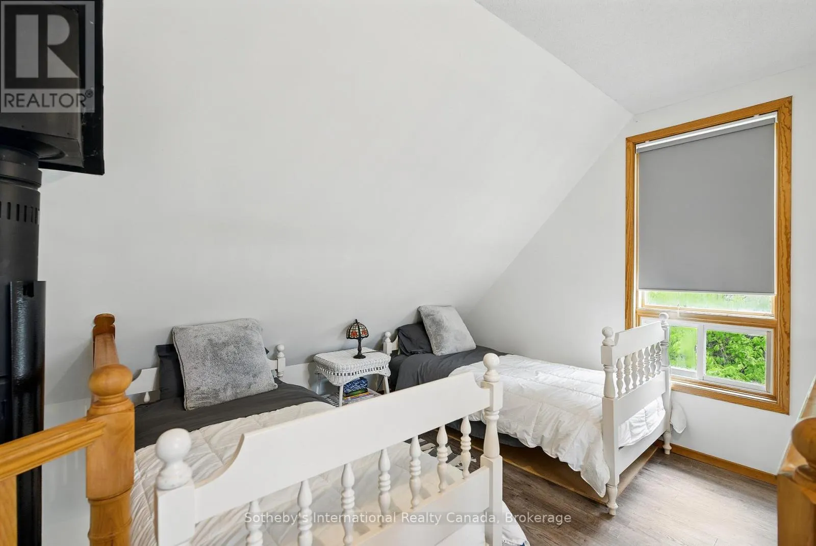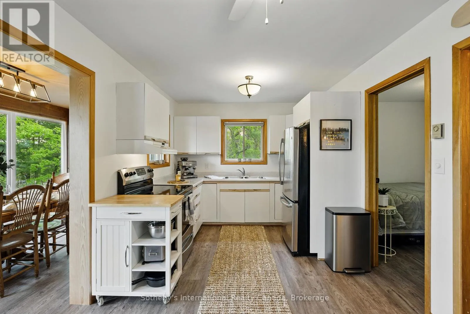 Boat Access Only | Beautifully updated 2-bed + loft, 2-bath cottage in peaceful Grants Bay on Kahshe Lake, just a 5-minute boat ride from the marina-with a Princecraft pontoon included! Set on a private half-acre lot with 110 ft of shoreline, the cottage blends charm and modern comfort. The open-concept living area features vaulted ceilings, a cozy woodstove, and large