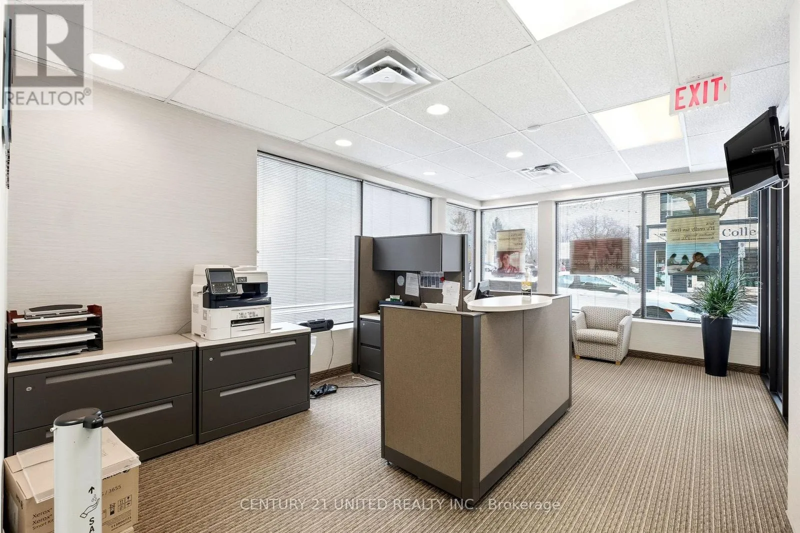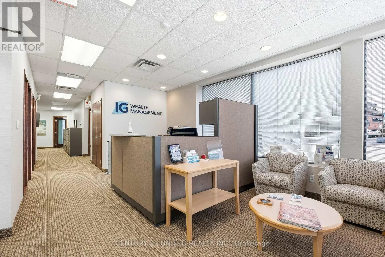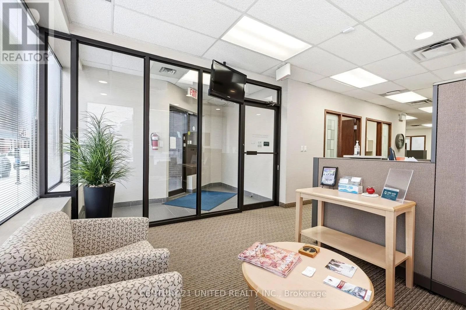 Seeking a Stellar tenant for Premium Location! Positioned for success. Conceptualize your new business or expanded location/relocation in this fabulous brick building in the heart of downtown. Excellent turnkey professional offices or clinic space, currently home to financial service offices. A secure, gated entrance. Modern glass main doors vestibule enters clients into a welcoming reception/waiting room space surrounded by