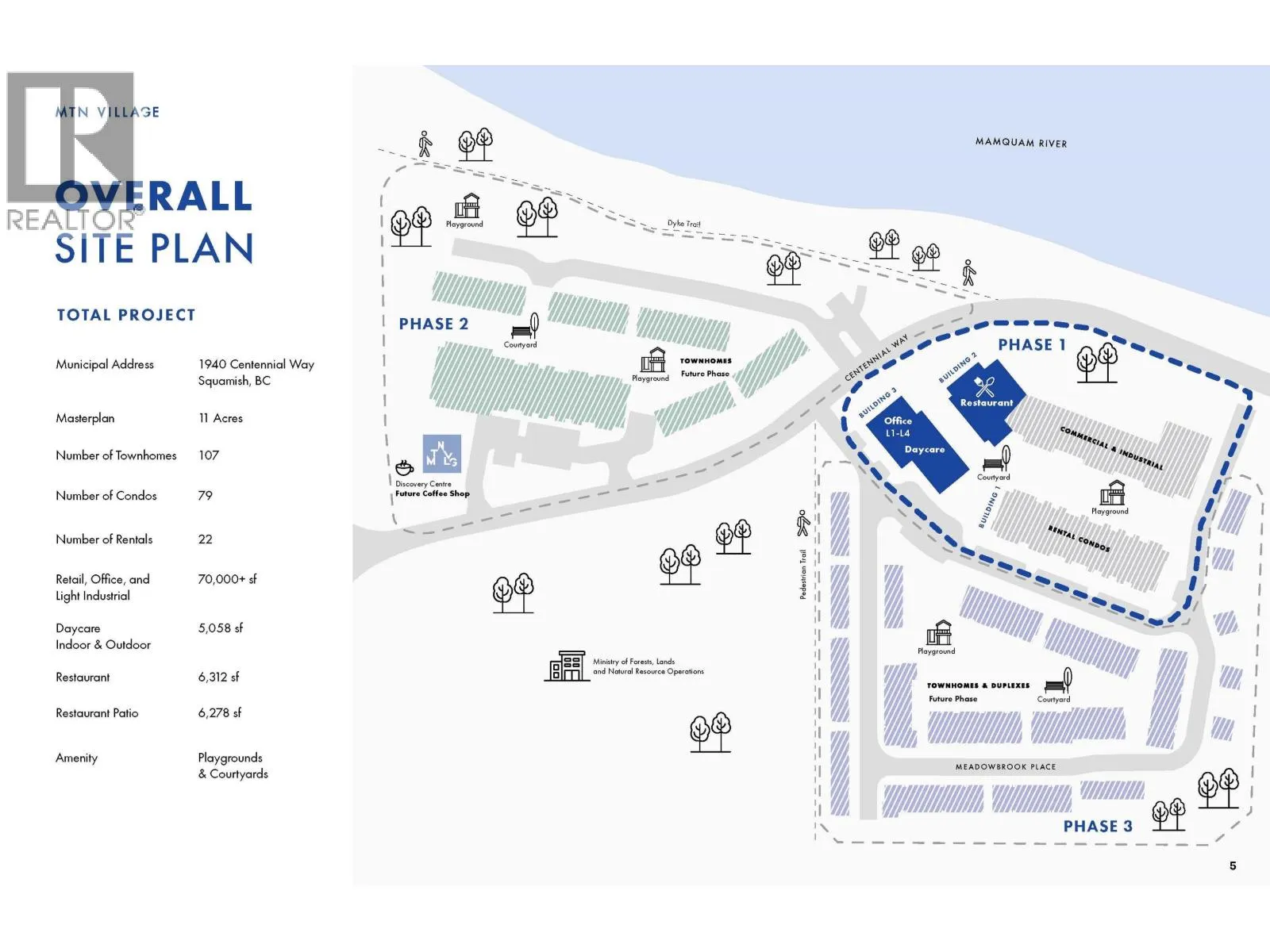 Mountain Village is a dynamic mixed-use community by Anthem Properties in Squamish, B.C.! This high quality office building is centrally located across from Brennan Park Recreation Area and looks upon the shores of the Squamish River and scenic mountains behind. The office building offers 28,000 sq ft of office space over 4 stories, with units as small as 1,500 sq.