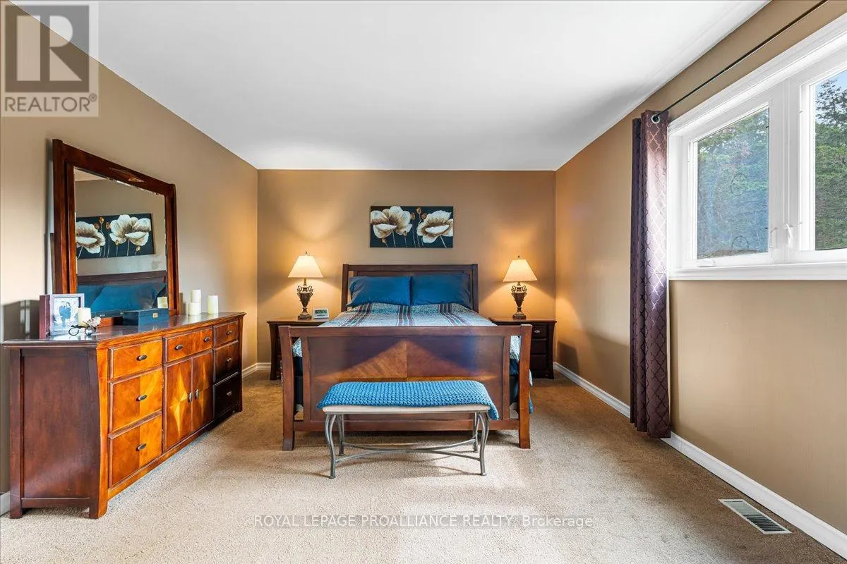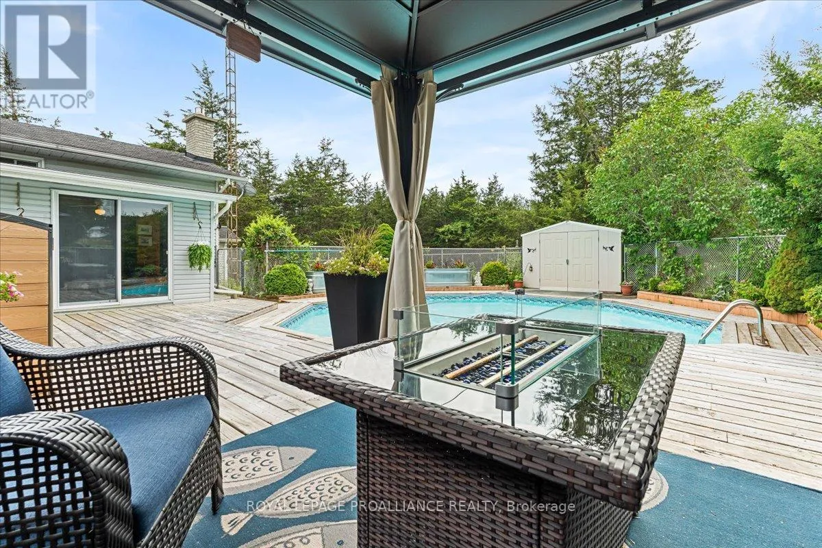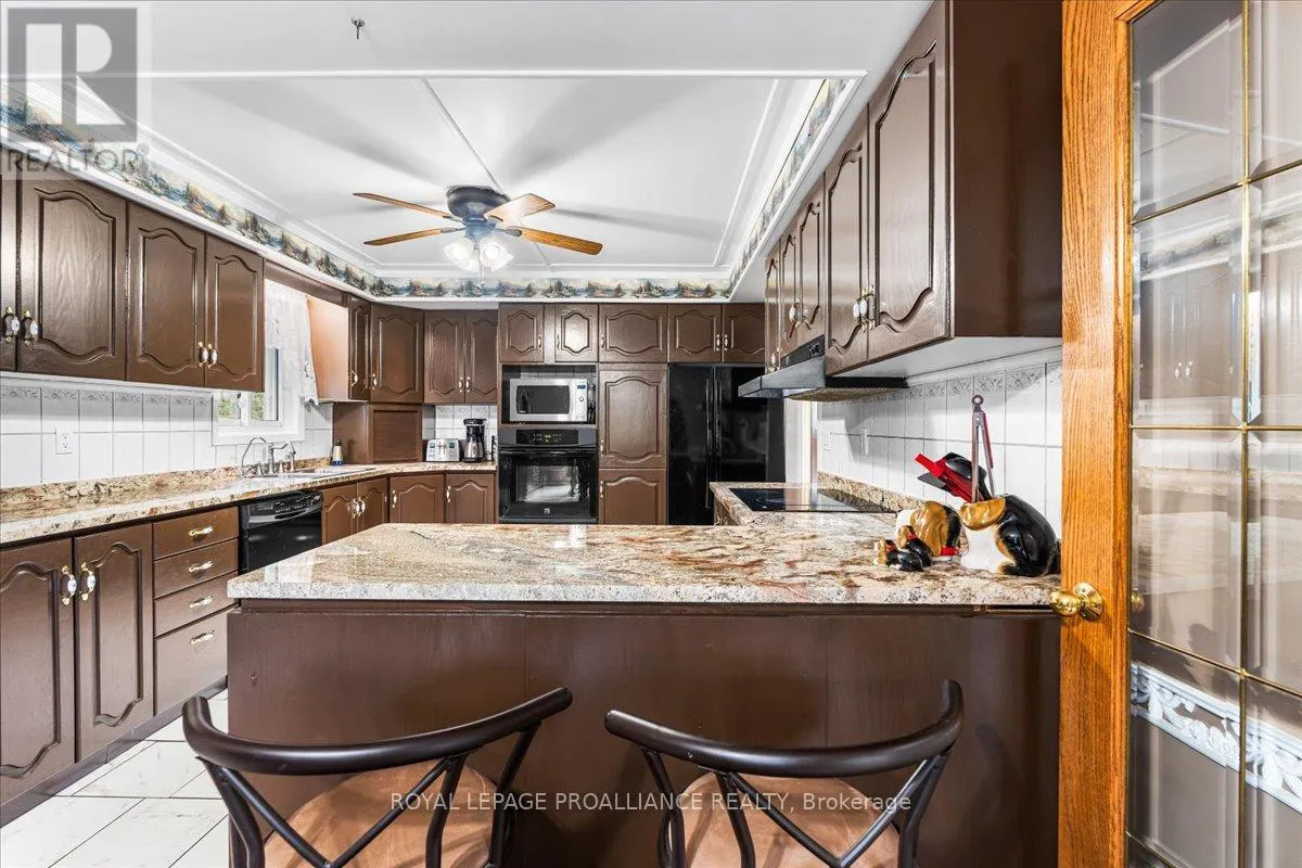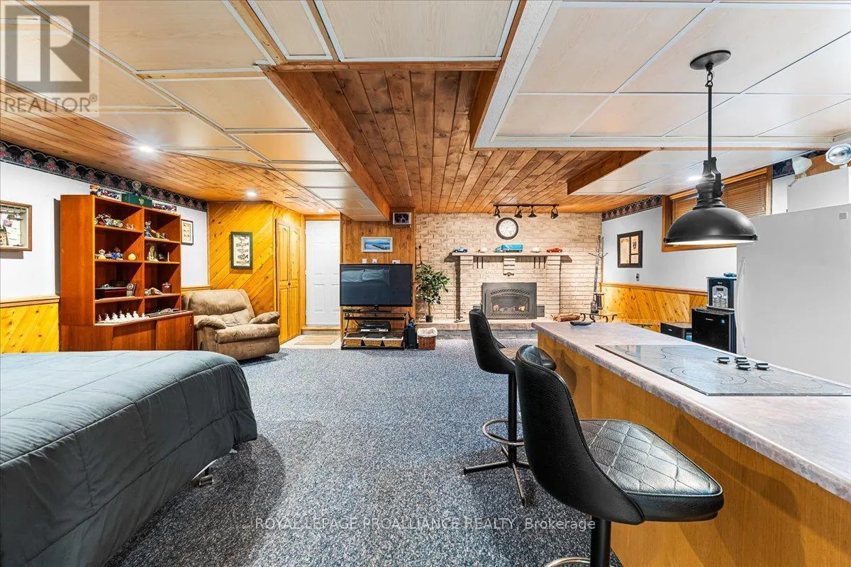 Escape the hustle without sacrificing convenience on this private, three-lined 2+ acre retreat just 8 minutes to the 401 and 15 minutes to town. Tucked away on a quiet private road, this spacious home offers 4 generous bedrooms, a beautifully renovated bathroom, granite kitchen counters, a bright sun-room, and a massive re room with kitchenette-perfect for entertaining or multi-generational living.