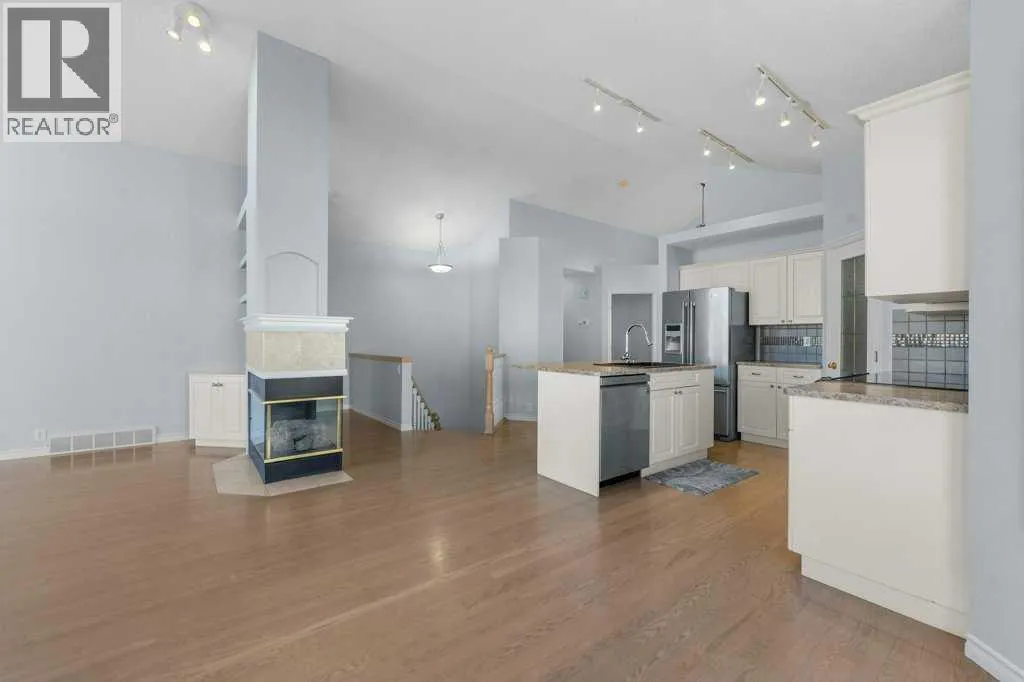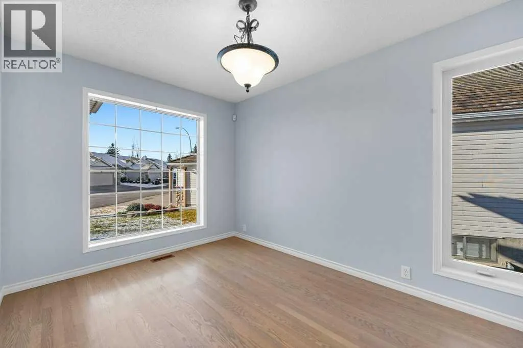 PICKLEBALL yourself)? Come see 58 Chaparral Close. Do you like to KEEP BUSY in the GARDEN? You will love this pie-shaped lot where you can BEAUTIFY the gardens to your heart’s delight. With a DOUBLE ATTACHED GARAGE for your cars and a FULLY FENCED YARD for your puppies (rare among villas), you can downsize and still keep the lifestyle you have enjoyed. STEP INSIDE, and you will love the updating and upkeeping that has been lovingly poured into this home. FRESHLY PAINTED main level! Check out the SLATE FLOORING at the FRONT ENTRY, and EXTENSIVE SITE-FINISHED (and RE-FINISHED) HARDWOOD through much of the main. Just BEAUTIFUL! Soaring VAULTED CEILINGS, and PLENTY OF NATURAL LIGHT make the home feel even more spacious! Would you like a separate TV room on the main? The FRONT OFFICE could double as a TV room (with interior window and a french door to make it quiet but still visible and bright)! Do the kids and grandkids love to come your way for DELICIOUS FAMILY MEALS? The dining room is great for your SPECIAL GATHERINGS, with ELEGANT PILLARS AND ARCHWAY ENTRY! Check out the kitchen! The KITCHEN CABINETRY has been RE-MODELLED (changing the original angled island to a highly functional LARGE RECTANGULAR ISLAND with BREAKFAST BAR and ‘SILGRANITE’ SINK with updated fixture)! Corner pantry, STAINLESS-STEEL kitchen appliances. The main level primary bedroom has a good-sized WALK-IN CLOSET & FANTASTIC ENSUITE BATHROOM with a CORNER SOAKING TUB plus an EASY STEP-IN SHOWER! The LIVING ROOM has a LARGE TRIANGULAR WINDOW, extending in the peak of the VAULTED CEILING, plus a COZY 3-SIDED GAS FIREPLACE with art nic he & built-in shelving. Main level laundry! STEP OUT BACK to your two-tiered deck with added distance from decks on either side, thanks to the pie-shaped lot. WIRING FOR a HOT TUB has been run to a lower patio. Back inside, now HEAD DOWNSTAIRS to your FINISHED LOWER LEVEL! Over 1000 SQ.FT. finished down (for a total of 2400 SQ.FT.). The lower level features 2 GUEST BEDROOMS, a FULL BATHROOM, VERY LARGE REC ROOM, and a little LIBRARY OR COMPUTER SPACE. This home has never been on the MLS until now. Updates include: REFINISHED HARDWOOD 2013. SOME KITCHEN RENO’S IN 2013. NEW WATER HEATER in 2019. NEW FURNACE IN 2023. FRESH INTERIOR PAINT – 2025. NEW WATERLINES IN 2025! (id:64429)