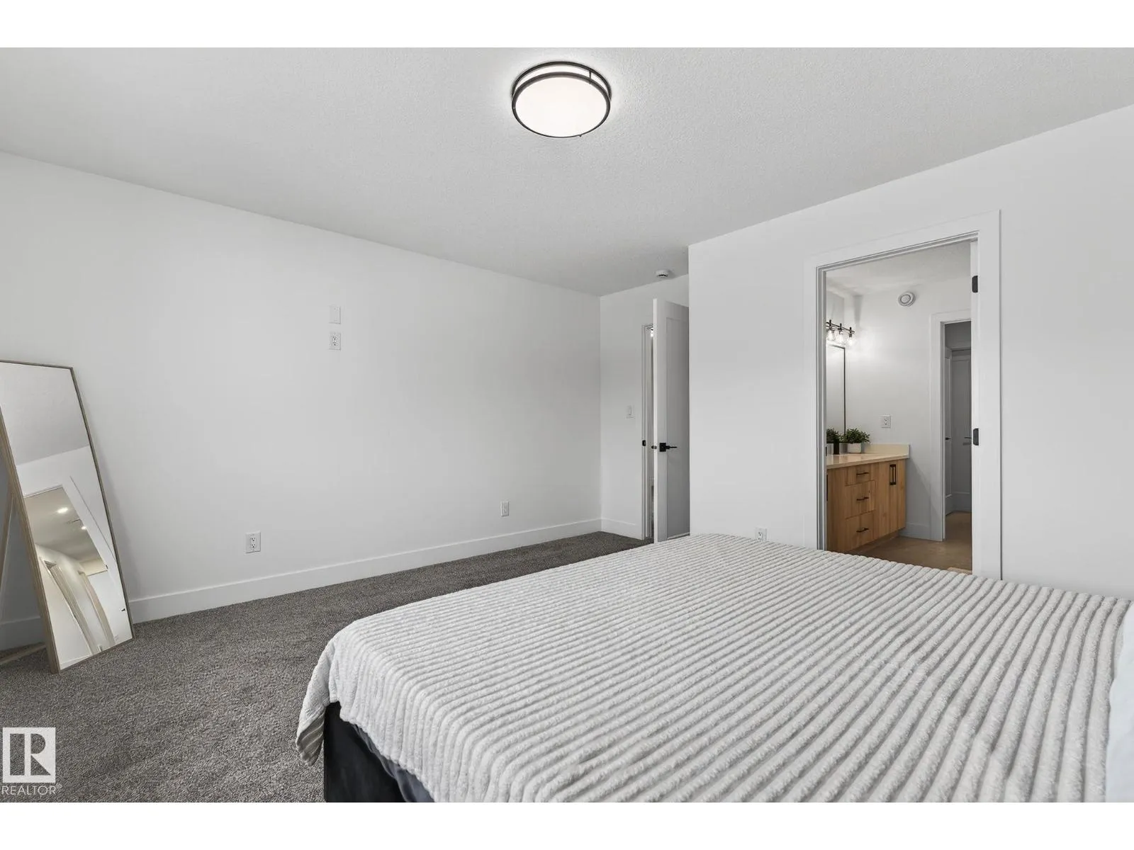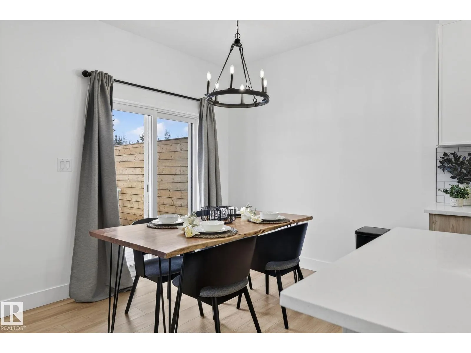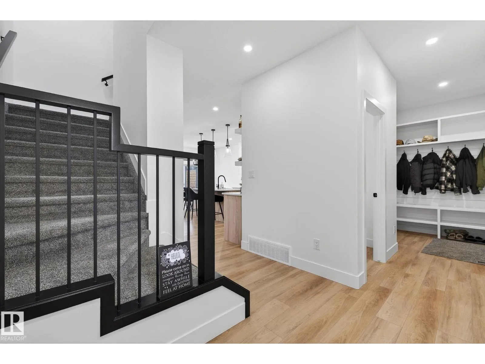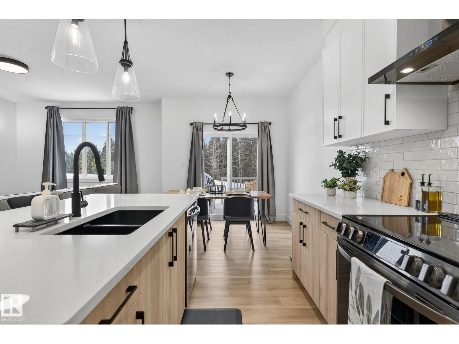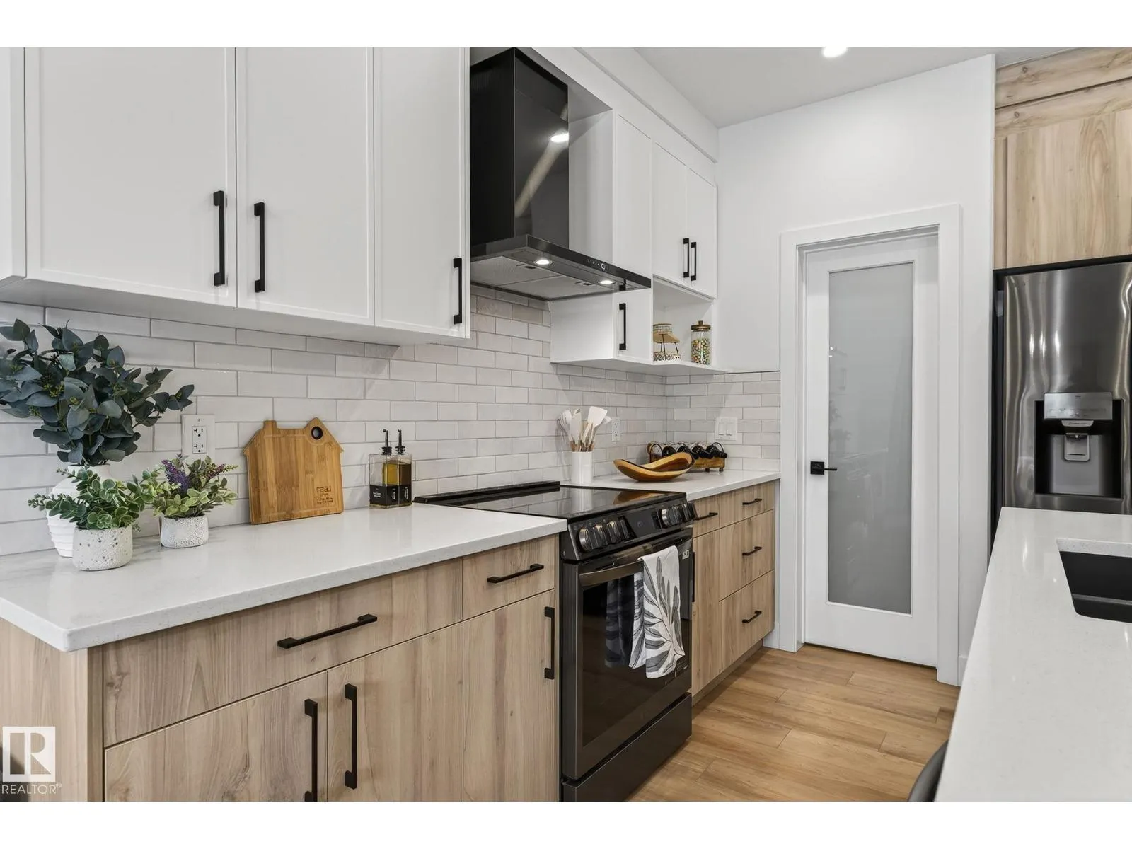 Welcome to this beautiful half duplex in Harvest Ridge, perfectly positioned backing onto mature trees. The main floor is thoughtfully designed with a bright, open-concept filled with natural light, which makes an immediate impression with its modern floor-to-ceiling feature wall and sleek electric fireplace. The kitchen is beautifully appointed with quartz countertops, soft-close cabinetry, and a walk-through pantry. Upstairs, a