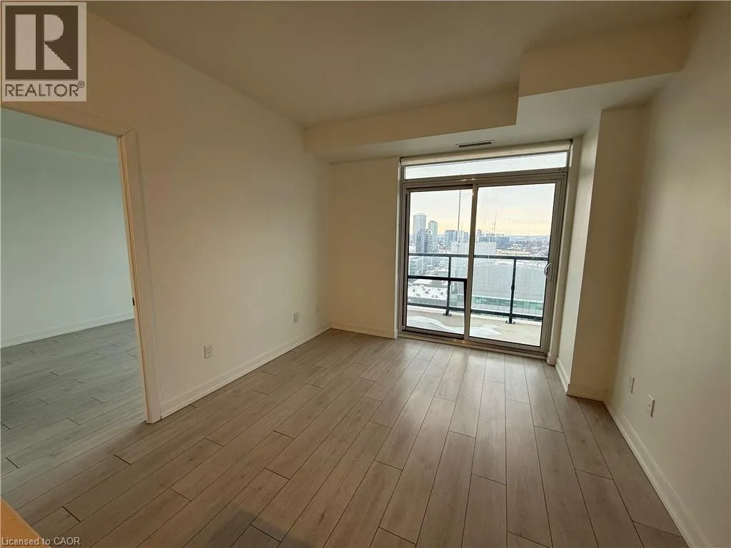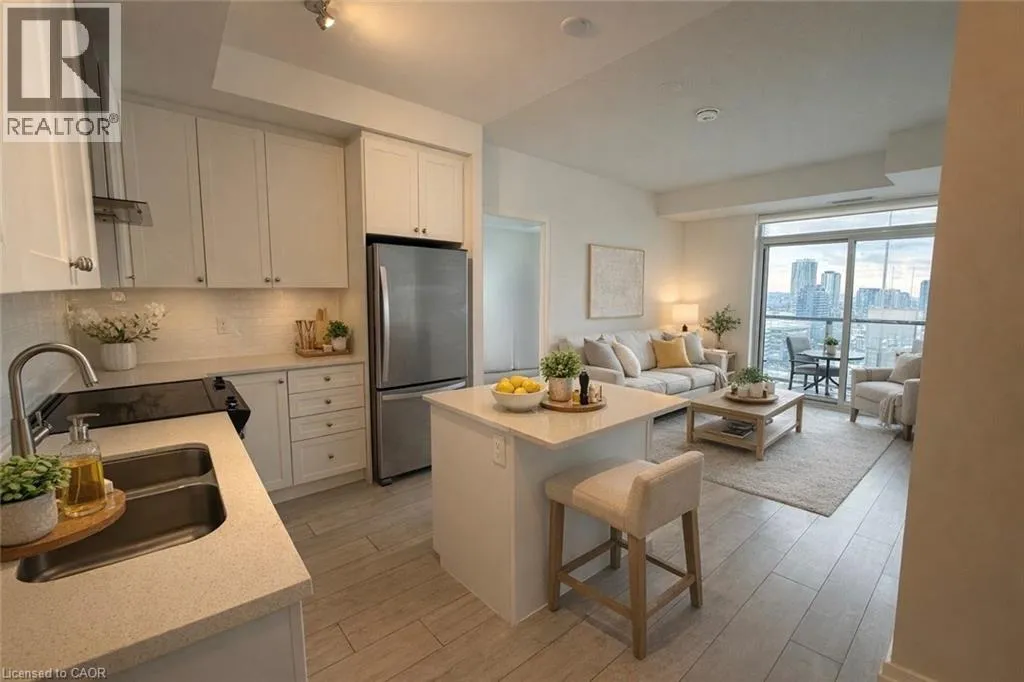 A beautifully designed 2-bedroom, 2-bathroom condo soaring above downtown Kitchener in the highly desirable Young Condos. This sun-filled residence offers an open-concept layout with a modern kitchen, stainless steel appliances, and floor-to-ceiling windows showcasing impressive west-facing city views. The primary bedroom features a walk-in closet and private ensuite, while the second bedroom provides versatile space for guests, a home office,