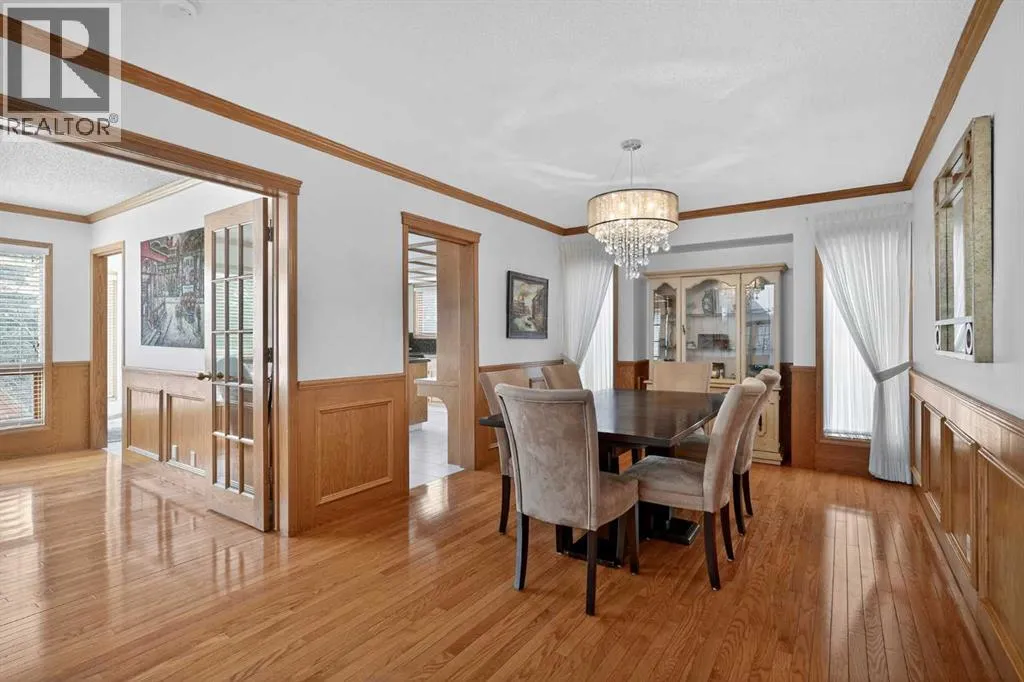 and reliable home that will last through the ages along with quaint gardens and mature trees. As you enter your new home you are greeted with a blend of tile and gleaming hardwood floors that will invite you in to high ceilings, see through stair cases, windows everywhere and a fantastic open floor plan. A formal sitting room overlooks your front yard and is the perfect place for reading or conversation with guests. Your sunken living room with soaring ceilings is a focal point of the home and a show stopper to say the least accompanied by your gas fire place and door leading to the wrap around deck. Your dining room is the perfect size for entertaining or for quite nights home with the family. Your well equipped kitchen features thick granite counter tops, stainless steel appliances, a gorgeous breakfast nook surrounded by windows overlooking the back yard and access to the rear deck, perfect for indoor/outdoor dining and entertaining. Another sitting room with gas fireplace is attached to the kitchen and is perfect for a home office, library or TV room. Your half bathroom/laundry room finishes off the main floor before heading upstairs. On the upper level you have a perfect layout starting with a small seating area leading through french doors to your primary suite. Opulence is the word to describe your primary retreat. Large enough for an oversized king bed, all of your additional bedroom furniture and a seating nook bathed in light, overlooking your back yard. The spa style ensuite gives luxury hotel vibes with a large soaker tub, walk-in shower, beautiful tile work and dual sinks. The second and third bedrooms are a great size and each have a door to the full bathroom directly from the bedrooms. The basement is fully finished as an entertainment space and includes the pool table making it the perfect area for family game night or to host your friends for the big sporting event on that weekend. The outdoor space is really what makes this home special with a large deck, expansive yard with mature trees and backs directly on to a playground that you can access from a gate in your back fence. Truly one of the most special features of this home. Your new home is right in the middle of 3 amazing schools within minutes from your front door, Strathcona Park Board Walk down by the river, soccer fields, parks, pathways and playground’s making this a unique opportunity to own this stunning home in one of Calgary’s most desired communities. Welcome Home (id:62650)