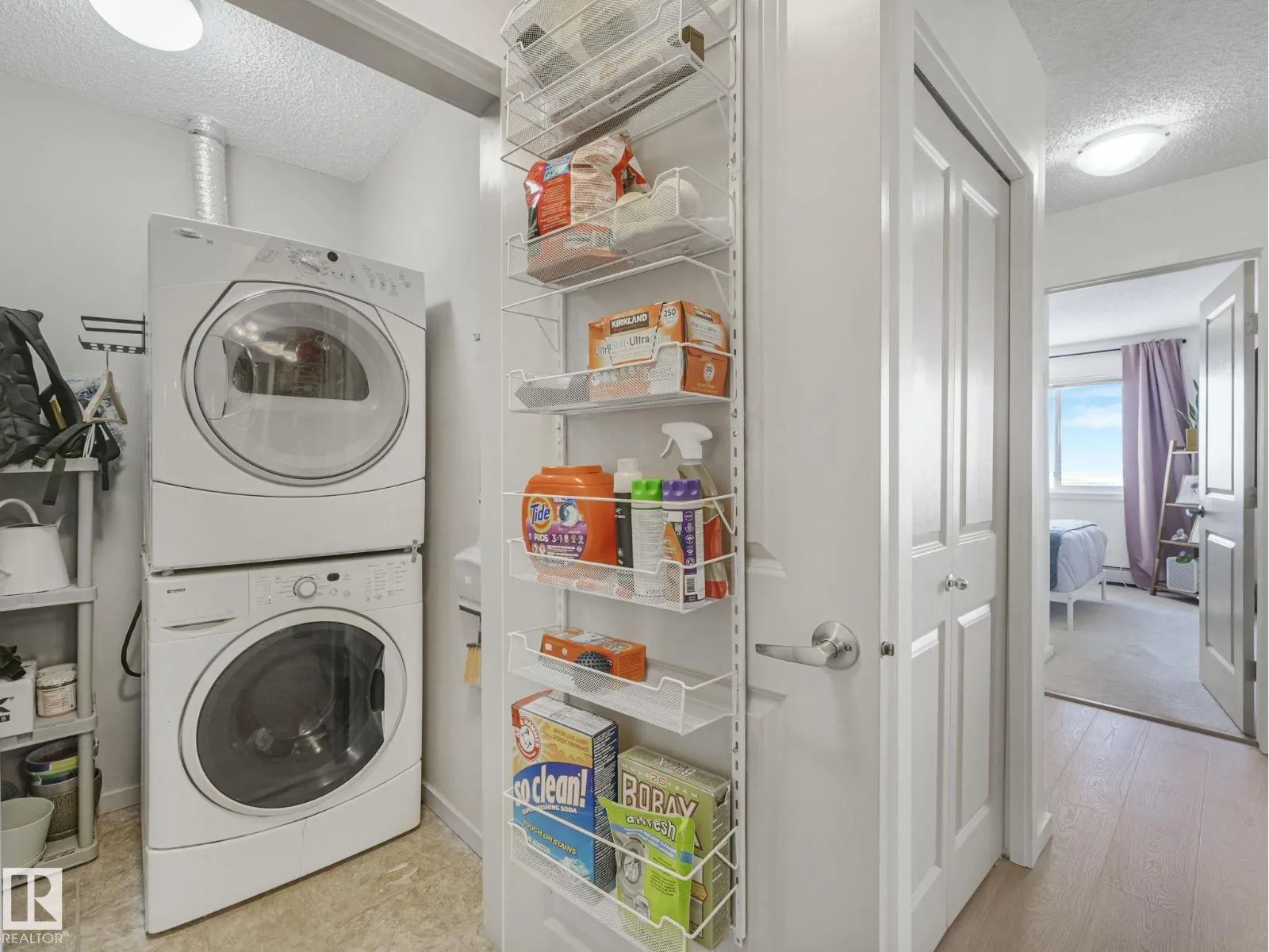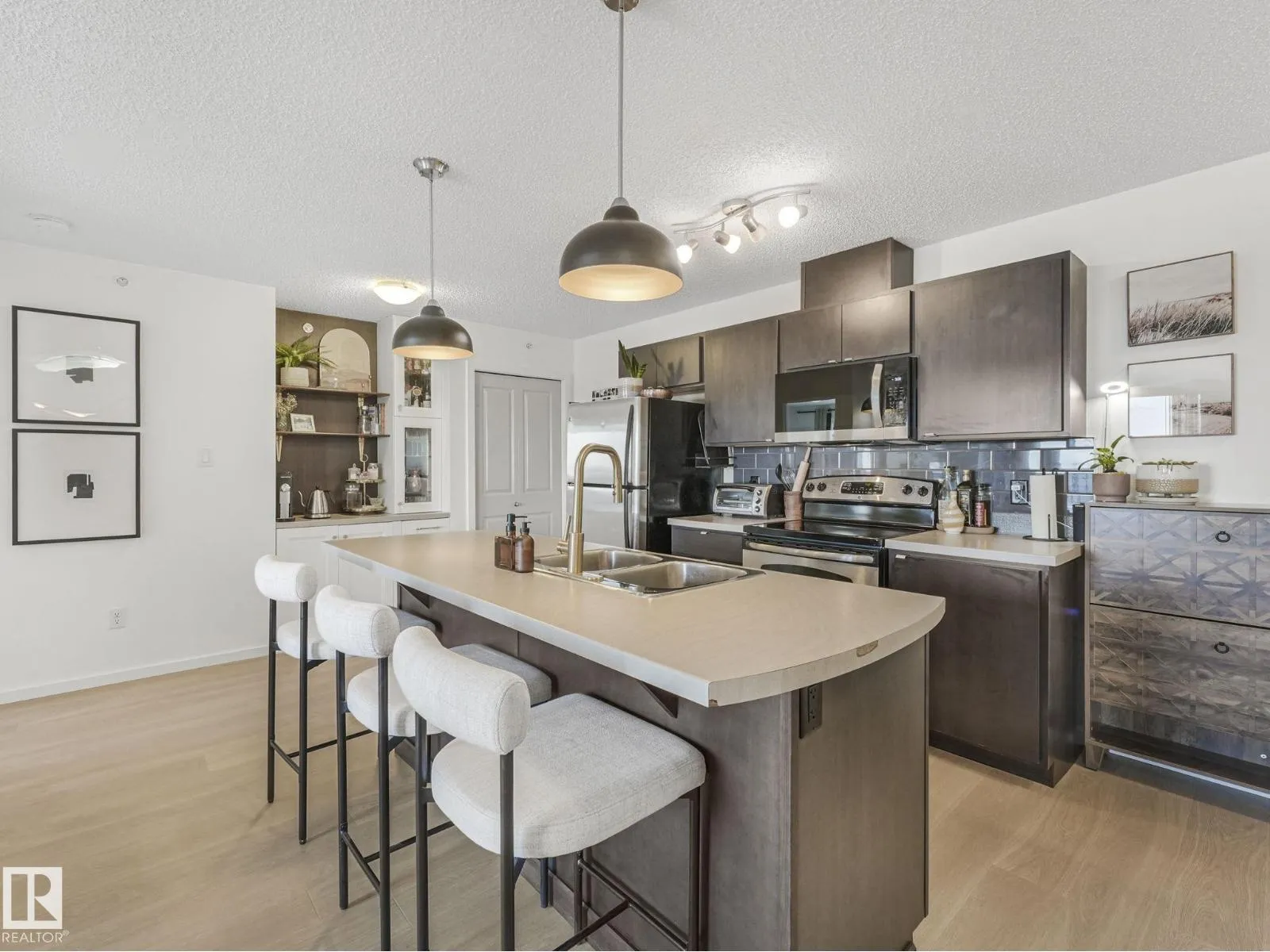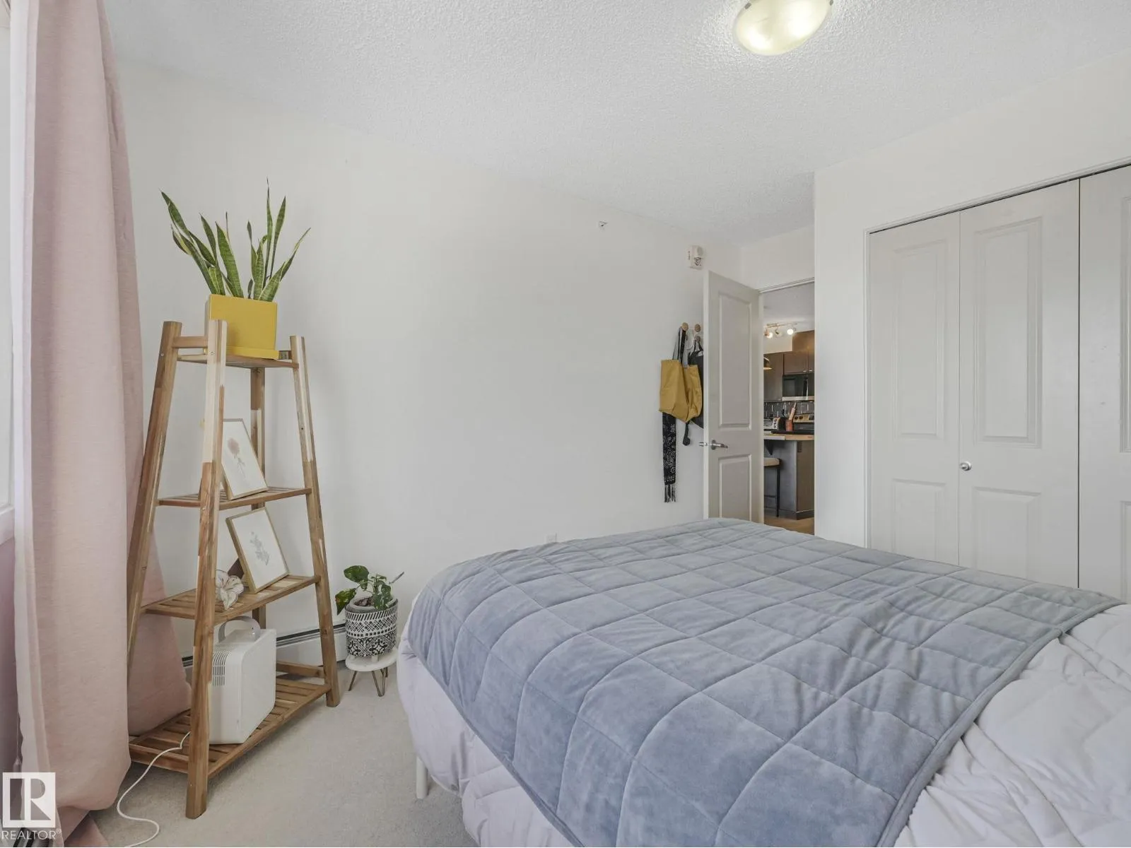 TOP FLOOR, bright, updated unit with unobstructed views of the river valley! 810 sq ft, 2 bedrooms / 2 full baths, plus 2 titled UNDERGROUND HEATED parking stalls and storage cage (located on the same floor as the suite). Open-concept layout with an island kitchen with stainless steel appliances, pantry, a new built-in coffee nook. Fresh white paint throughout, and