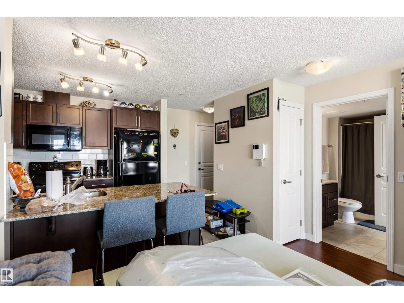 Welcome to Aspen Park Condos, where comfort meets convenience. Ideally located near walking trails, schools, shopping, and amenities, this property offers an exceptional lifestyle that’s perfect and waiting for you! The tiled entry leads into a bright, open-concept layout. The kitchen overlooks the living and dining areas and features granite countertops, black appliances, espresso cabinetry, and an eat-up bar. The