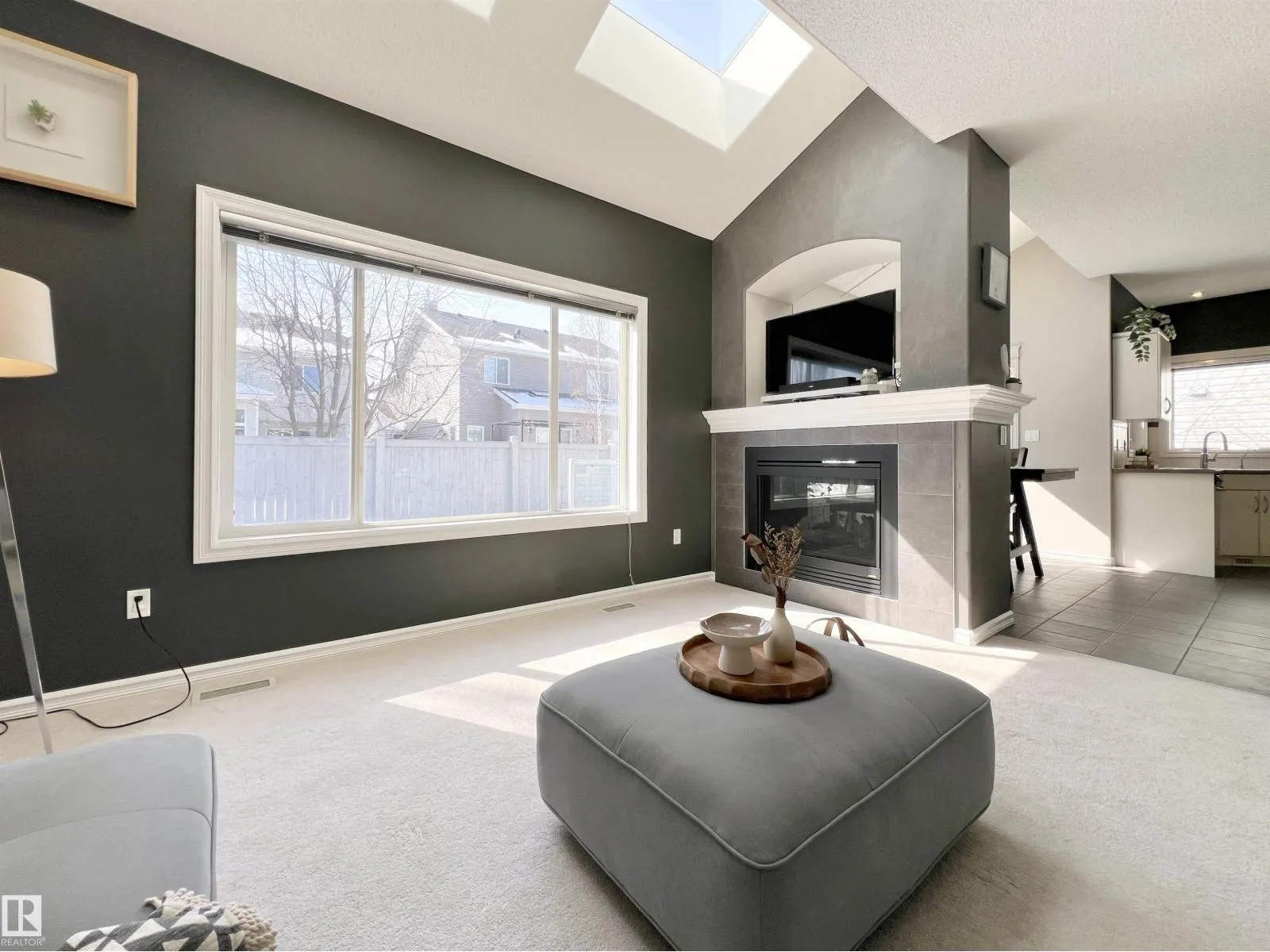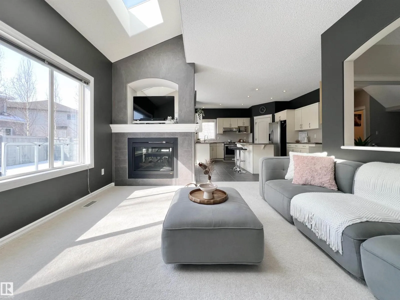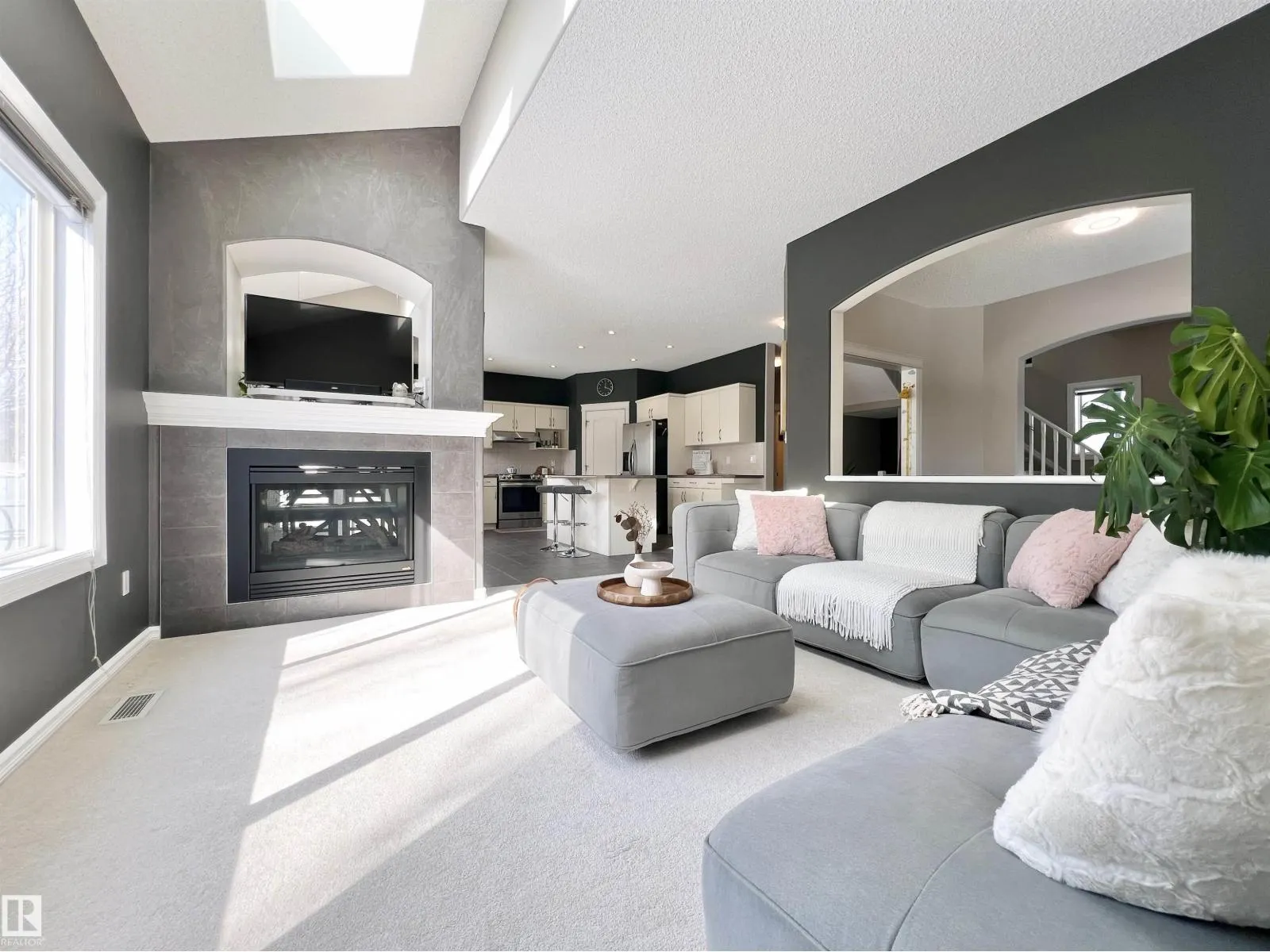 Welcome to this beautiful A/C home w/SOUTH backyard in a quiet cul-de in Glastonbury • Main Floor: 9-ft ceilings, an office, Skylights & soaring ceilings w/natural light, double-sided fireplace w/dual TV mount above, walk-through pantry, and the laundry room w/practical sink • Upstairs: the vaulted bonus room—spacious, versatile, w/ built-in workstation & entertainment centre. The primary bdrm is large sqft