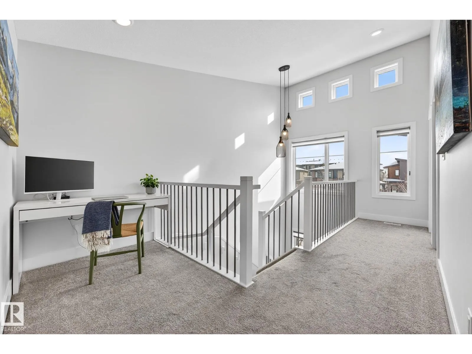 Welcome to 12 Amesbury Wynd! ZERO Condo Fees. This 1894 sq ft 2-storey end unit by Cameron Homes offers 3 bedrooms, 2.5 bathrooms, a stunning vaulted stairwell with 9’ ceilings, a double detached garage. Upstairs nook and tiled laundry room. Meticulously maintained! Designer finishes throughout—granite & quartz countertops, premium stainless steel appliances, custom California Closets, designer lighting, central A/C and