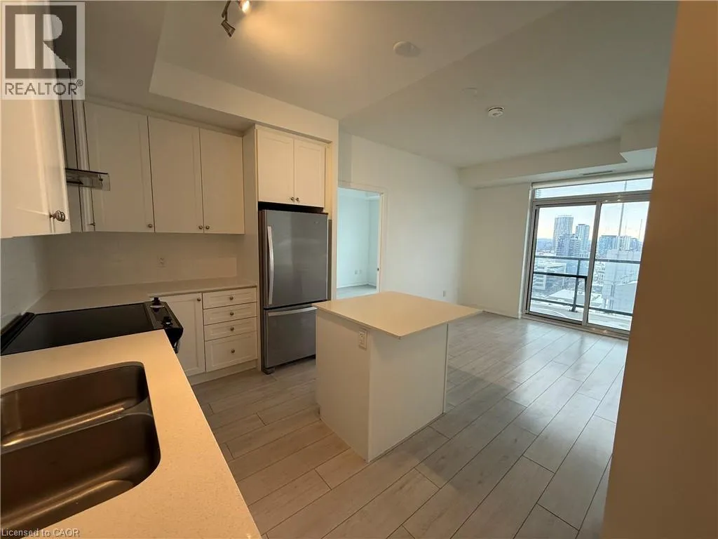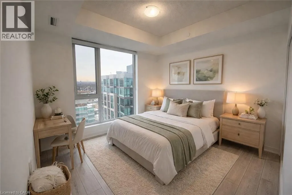 A beautifully designed 2-bedroom, 2-bathroom condo soaring above downtown Kitchener in the highly desirable Young Condos. This sun-filled residence offers an open-concept layout with a modern kitchen, stainless steel appliances, and floor-to-ceiling windows showcasing impressive west-facing city views. The primary bedroom features a walk-in closet and private ensuite, while the second bedroom provides versatile space for guests, a home office,