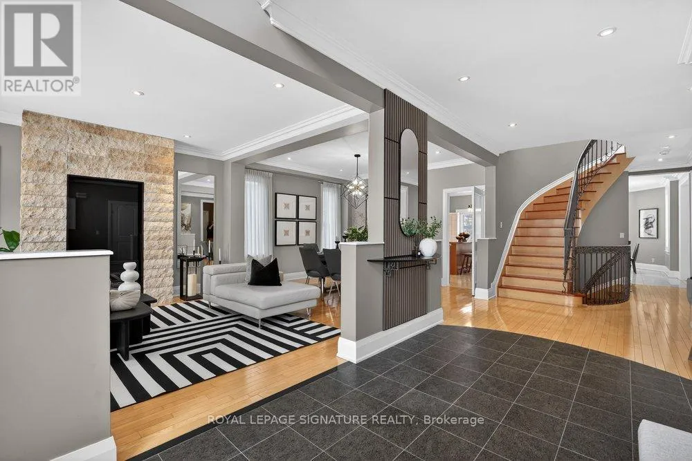 Discover elevated living at 27 Cleta Dr with over 5,000 SQ.FT of living space, this sophisticated 4+2 bed, 5-bath home is set on a premium 54×183 ft lot with a double garage and six-car driveway! A grand double-door entry unveils a dramatic foyer with soaring ceiling. The open-concept living and formal dining areas exude timeless elegance, with rich hardwood floors,