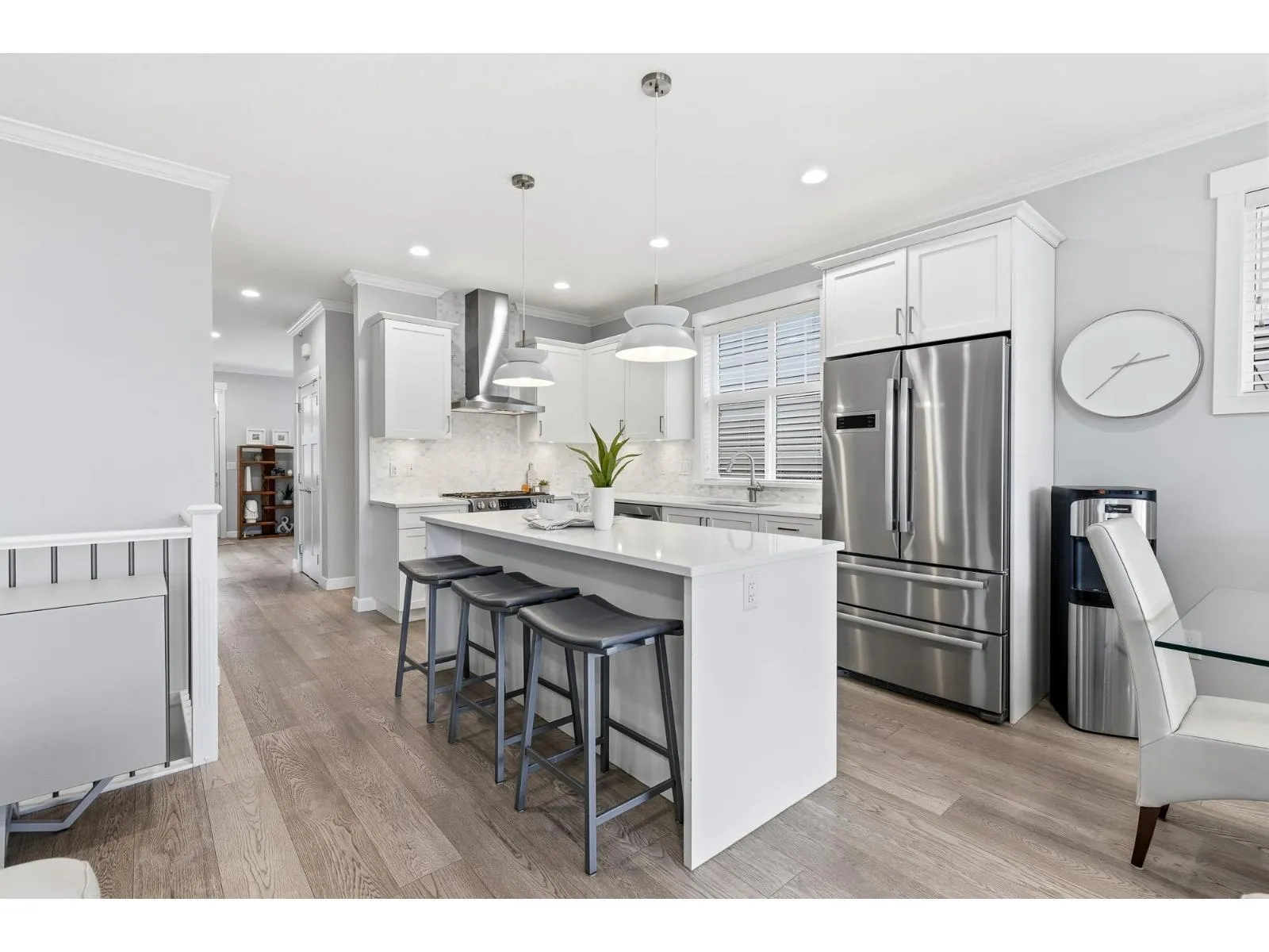 Rare offering in Prestwick-an elegant townhome in the heart of Willoughby designed for refined living. This stunning 2-storey with basement showcases a main-floor primary retreat with a spa-inspired ensuite and expansive walk-in closet. The open-concept interior features soaring 9′ ceilings, a bright designer kitchen with quartz surfaces, premium stainless appliances, and elevated finishes throughout. Enjoy seamless indoor-outdoor living with a