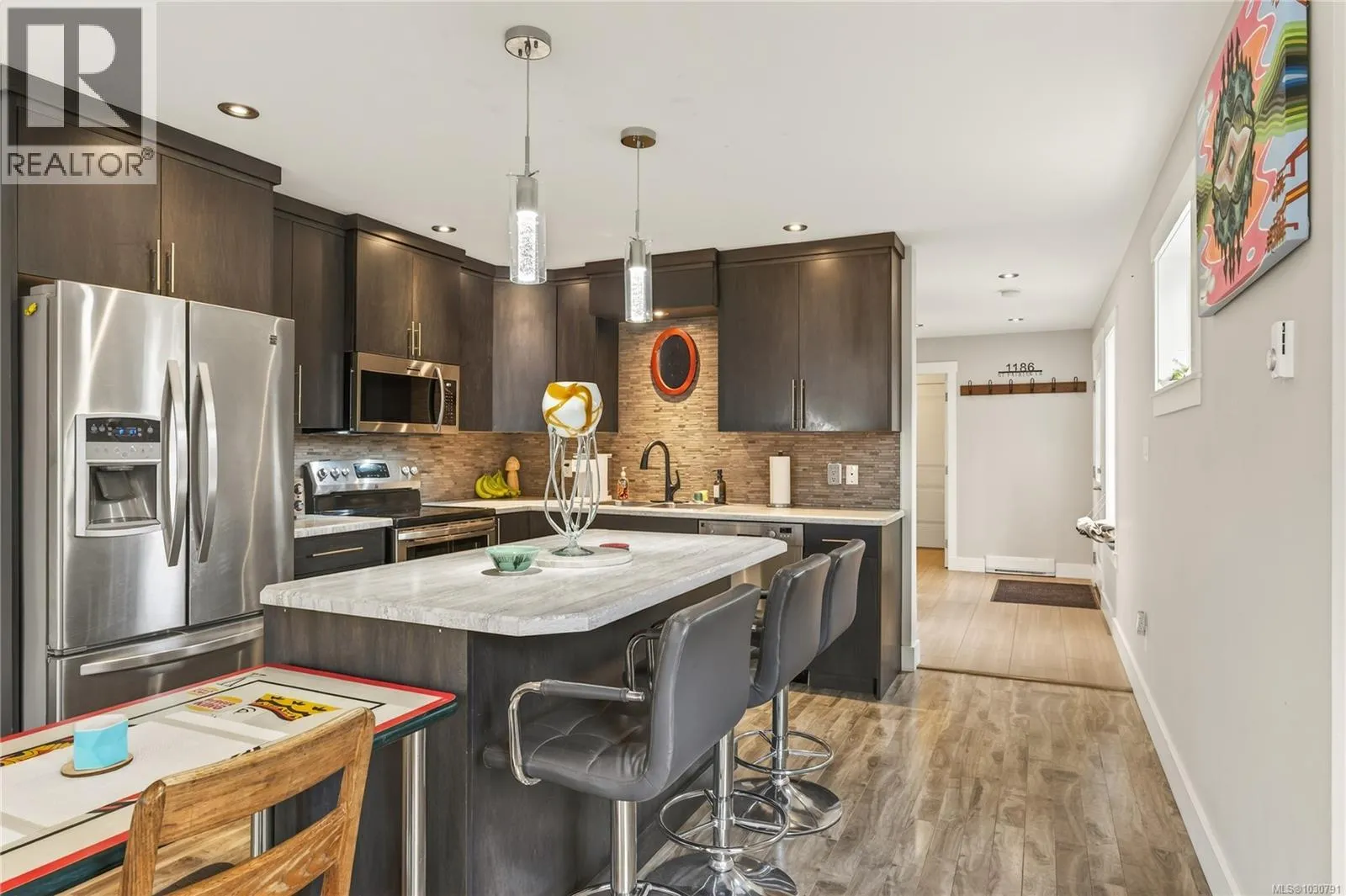 Welcome to this beautifully maintained 3 bed, 3 bath home in the heart of Central Nanaimo, offering the perfect combination of modern style, comfort, and everyday convenience. Built in 2012, this two-storey home features a bright and functional open-concept main level designed for both relaxed living and entertaining. The kitchen is a standout with rich dark cabinetry, stainless steel appliances,
