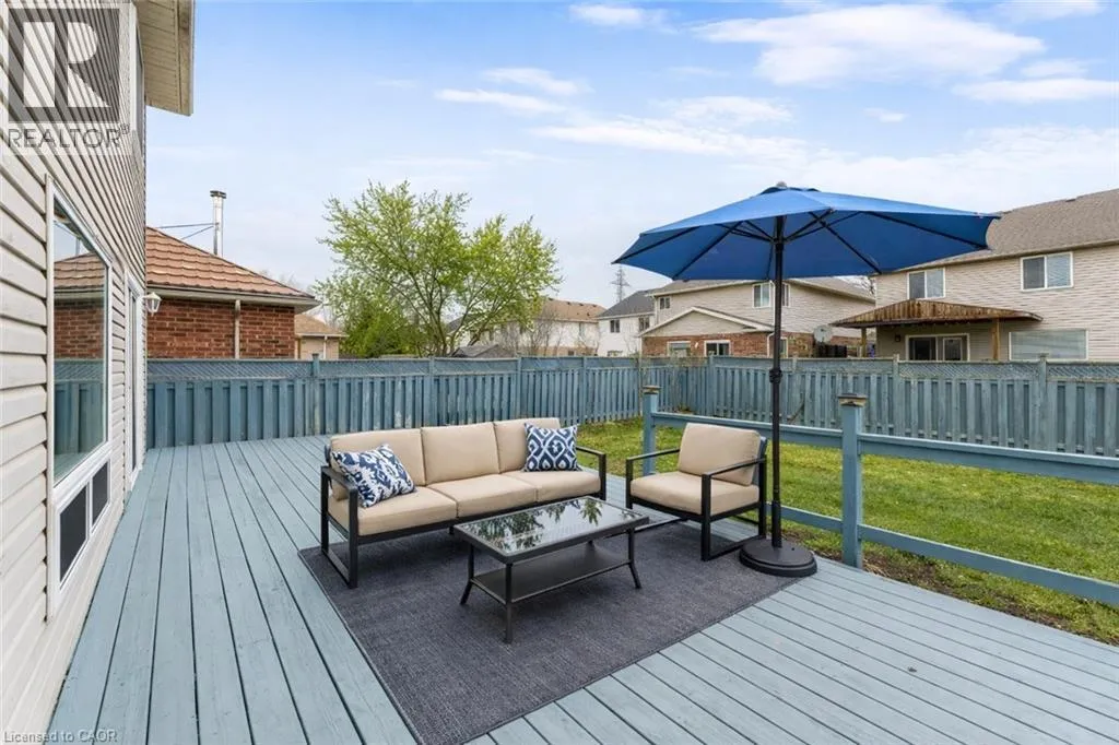 bright and welcoming foyer, overlooking 2pc powder room. The main floor features a modern layout that seamlessly blends the living, dining, and kitchen areas, The kitchen is well-appointed with stainless steel appliances, ample cabinetry and a window that fills the space with natural light, while the adjoining dining area creates the perfect setting for family meals or hosting guests. The spacious living area offers a warm and inviting atmosphere to relax and unwind. Upstairs, there are 3 generously sized bedrooms, including a large primary retreat, along with a well-appointed 4pc bathroom shared by the additional 2 bedrooms. A standout feature of this home is the upgraded, fully finished basement with a separate legal entrance. Complete with an additional bedroom, kitchenette, and 3pc bathroom, this space offers excellent potential for an in-law suite or rental income. This home has been thoughtfully updated, including modern pot lights throughout for a bright and contemporary feel, a new water softener installed in 2024, and a freshly painted deck (2025). Step outside to your private, fully fenced backyard oasis, featuring a spacious deck and storage shed, ideal for hosting summer BBQs, entertaining guests or simply enjoying quiet family time. Location is everything and this home truly delivers. Enjoy close proximity to parks, shopping centers, scenic trails and beautiful Grand River, just minutes from Chicopee Ski Hill, offering year-round recreation and easy access to Highway 401, 7/8. Don’t miss the opportunity to make this exceptional property your own. Book your private showing today! (id:62650)