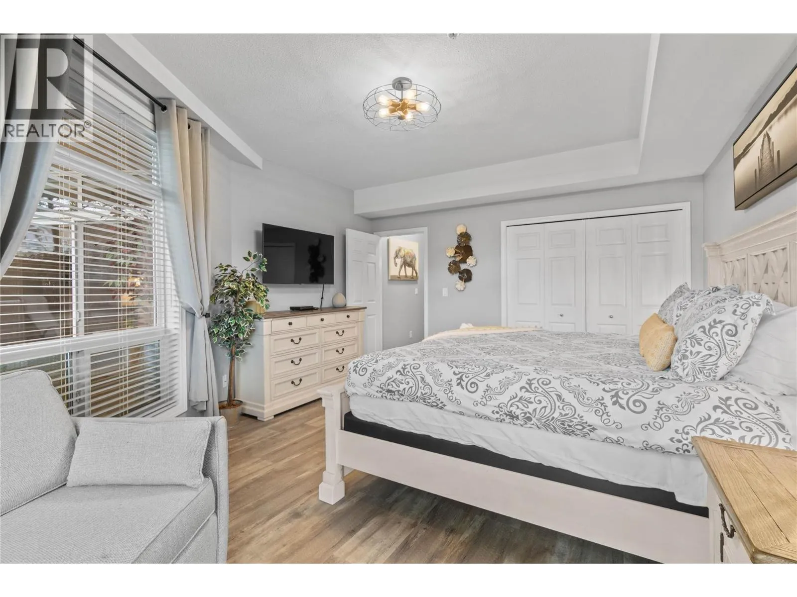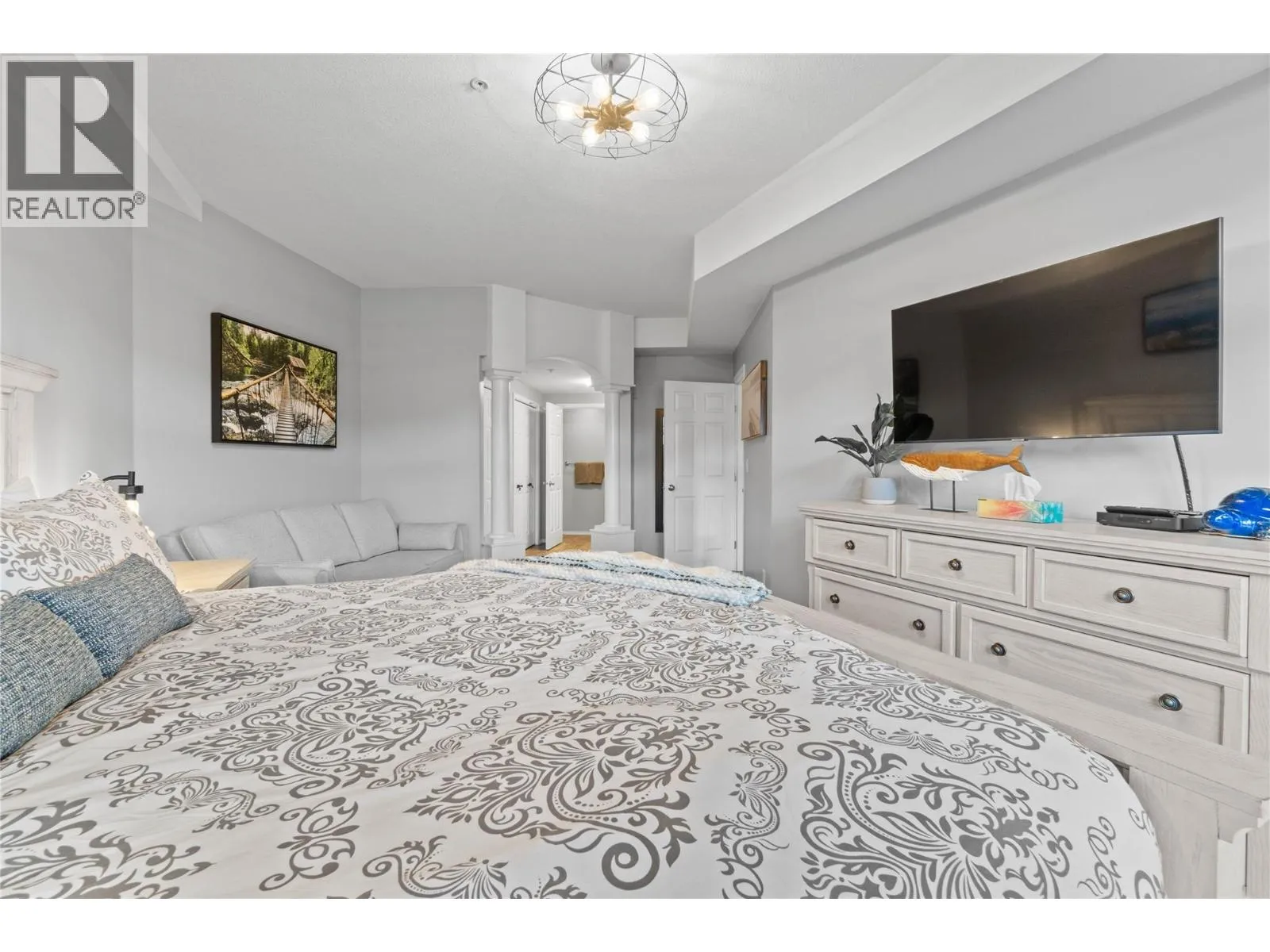 Welcome to your poolside retreat in Discovery Bay! Just steps from your patio, immerse yourself in the beauty of Lake Okanagan while lounging by the pool. This spacious 1580 sq ft suite, located on the 3rd floor amenities level has an updated open concept living/kitchen area, 3 generously sized bedrooms, 2 full baths, a sizable laundry/storage area, and 2 patios.