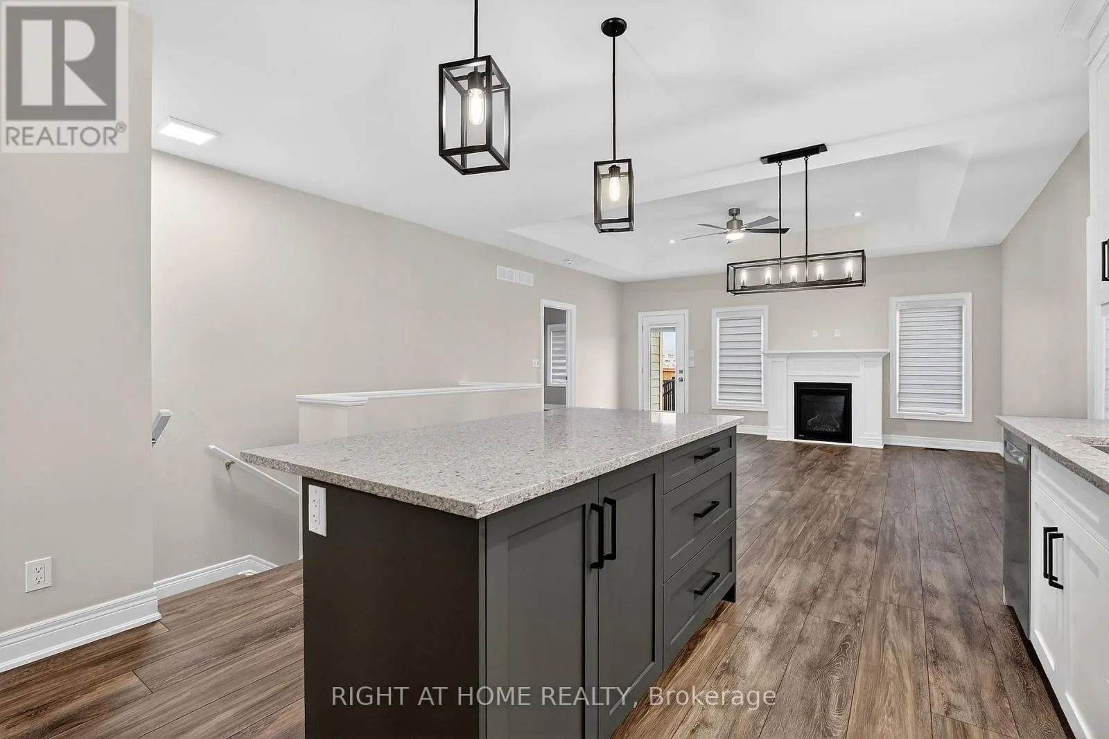 large great room with fireplace and bright and modern kitchen complete with large island and contemporary light fixtures. There is also a spacious primary suite complete with a walk-in closet and private ensuite, a second bedroom with a full bath nearby, and a third bright front-facing bedroom – or perfect for a home office. Engineered hardwood flooring flows throughout and convenient main-floor laundry. The basement extends the living space with a third bedroom, full bathroom, a cozy family room with another gas fireplace, and lots of storage. Step outside to a beautifully finished composite deck-ideal for relaxing or entertaining. An attached two-car garage and private double driveway complete this exceptional property. This home is a perfect blend of modern finishes, functional design, and an unbeatable location – ready to welcome you home! (id:62650)