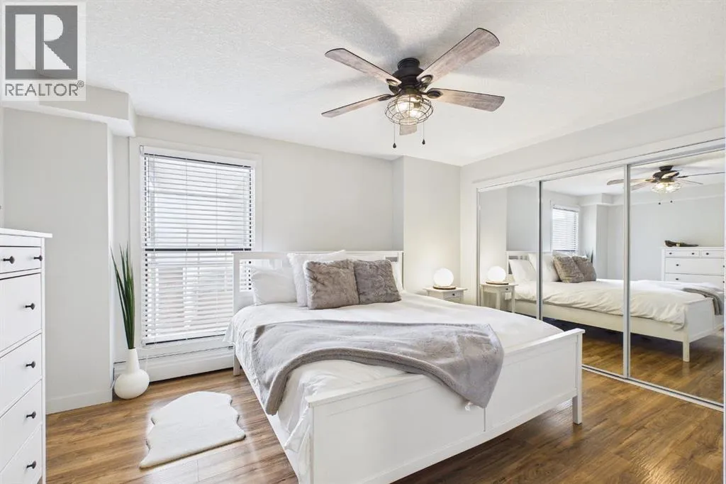 Experience elevated urban living in this stunning, updated one-bedroom sanctuary located in the prestigious Holly Park building of Crescent Heights. Boasting breathtaking panoramic views of the Bow River and the downtown skyline, this residence radiates pride of ownership through its modern finishes and unique, entertainer-friendly layout. Sun-drenched living and dining areas feature warm laminate flooring and expansive windows that open