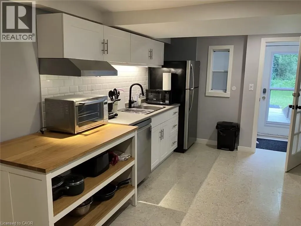legal duplex offers excellent versatility for families or tenant-buyers looking to offset monthly costs with potential rental income. Features two fully independent units. Bright, open-concept living and dining area filled with natural light. Cozy kitchen with quartz countertops, breakfast bar and Reverse Osmosis Water Filtration system. Professionally finished walk-out lower unit that doesn’t feel like a basement, complete with gas fireplace, pot lights, and cork flooring living room. Walk-out to a private backyard backing onto Woodland Park. Detached single garage/workshop with additional lower-level storage/workshop space. Prime Hespeler location within walking distance to downtown, schools, parks, and shopping, with quick access to Highway 401. Rent-to-own program available. Contact listing agent for details and to book your private showing. (id:62650)