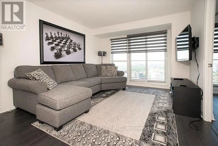 Luxury Monarch Ultra Building, Bright Sunlit Unit With Huge Balcony Of Unobstructed South View Of Downtown Skyline & Lake Ontario From Every Room! 2 Bedroom + Den (900 sf) W/2 Baths Plus Large Balcony (165 sf). Laminate Flooring Throughout. Floor-Ceiling Windows. Modern Kitchen With Granite Countertops & Backsplash. Great Amenities Such As Gym, Indoor Pool, Sauna, Media Room, Theater Room,