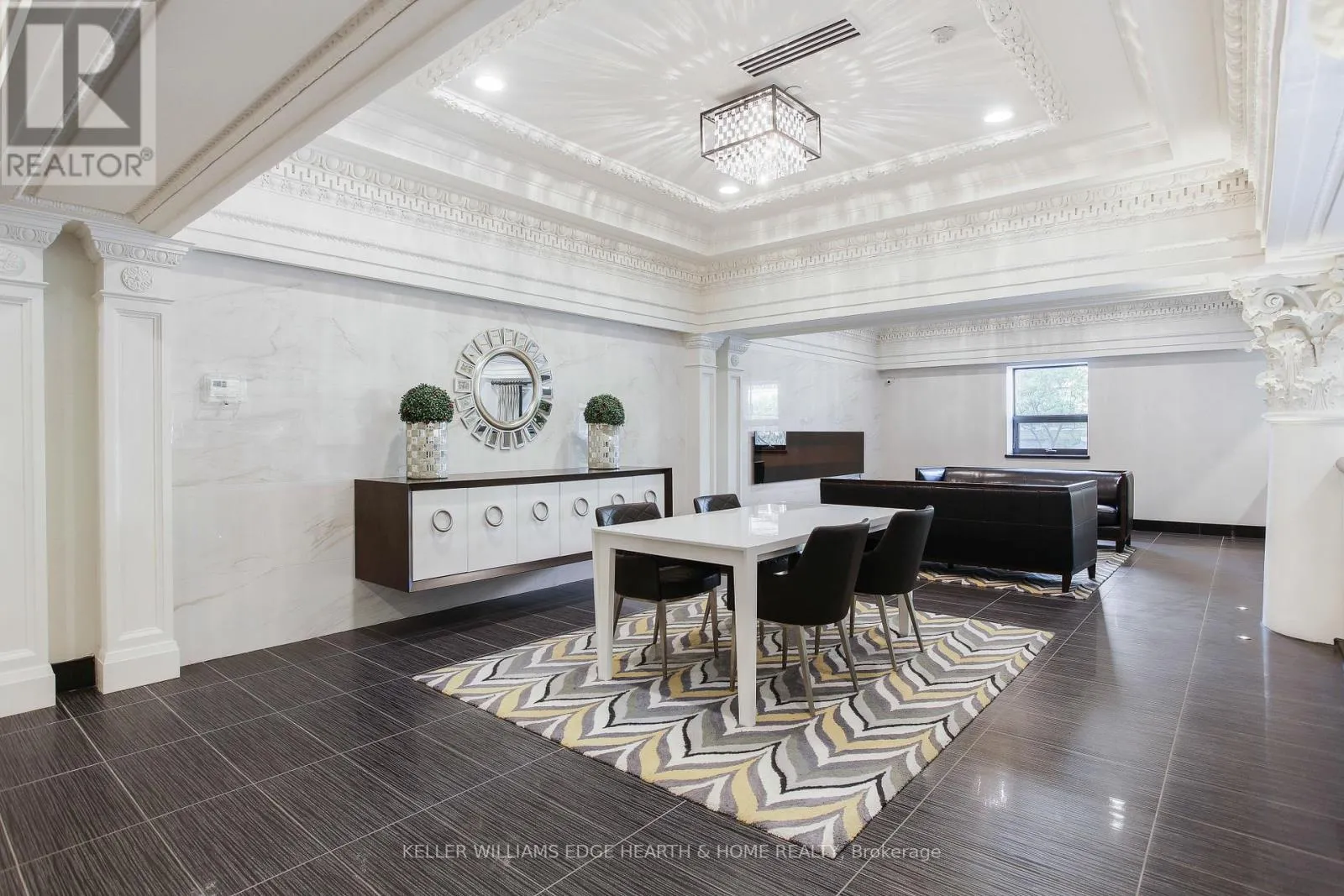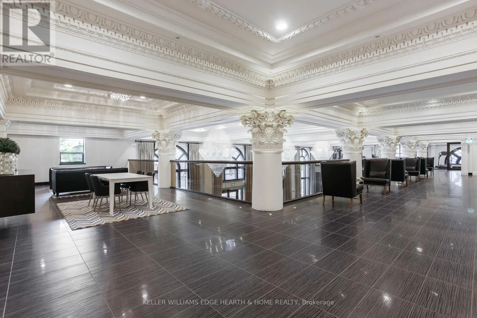 An incredible opportunity to call this iconic landmark building your home – introducing the unrivaled penthouse level. This exceptional loft-style suite showcases luxury living with thoughtfully curated, high-end finishes throughout.Featuring dramatic 18-foot ceilings, dual balconies, and an open-concept kitchen, living, and dining area framed by soaring windows, the space feels both expansive and inviting. Large-format tile flooring complements the sleek